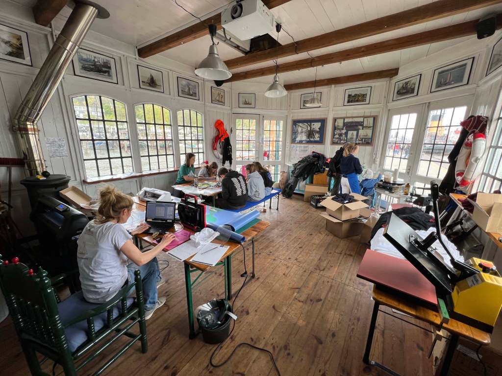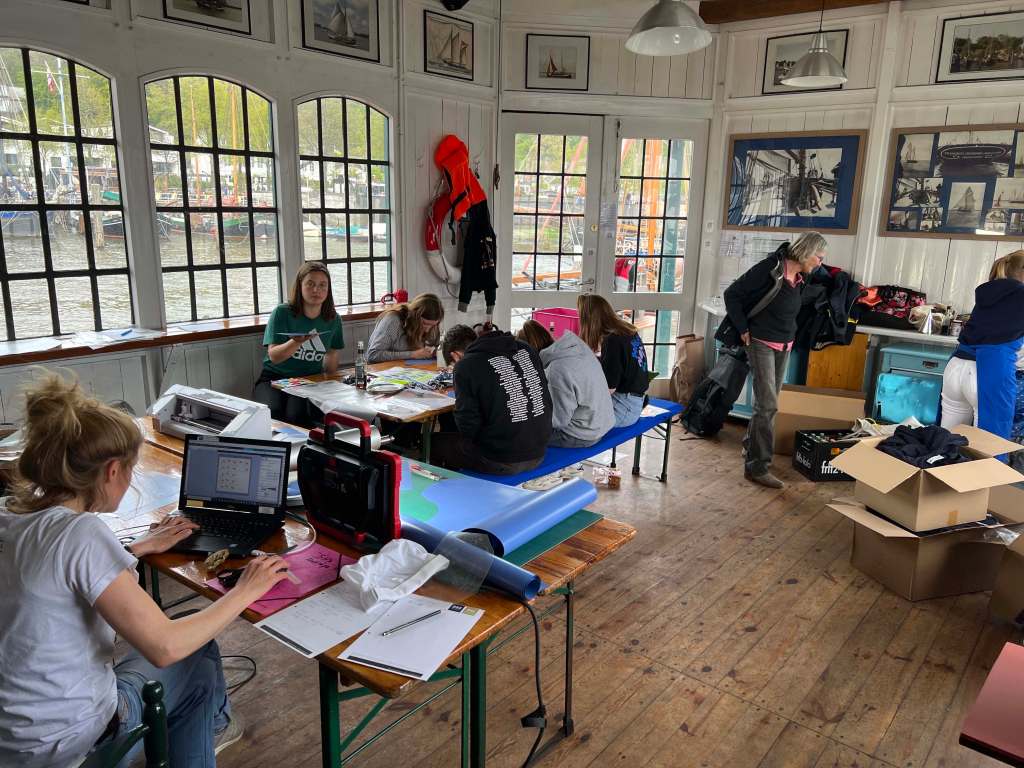Bis zur letzten Minute wurden alle helfenden Hände verwendet, um das Schiff segelfertig zu machen. Am Ende war es das fast, aber es ging trotzdem los. Der Rumpf war dicht, der Mast stand und die Segel waren angeschlagen. Schlafen konnte man auch also steht dem Inseestechen nichts mehr im Weg.