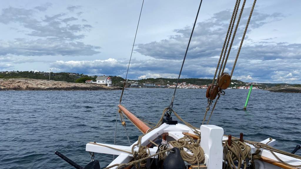 An der berüchtigten Untiefe verändert sich langsam die Situation. Der Wind schralt (kommt spitzer von vorne), anders als erhofft, und mit der Kursänderung gen Risör/Norwegen ergibt sich ein sportlicher Amwindkurs.