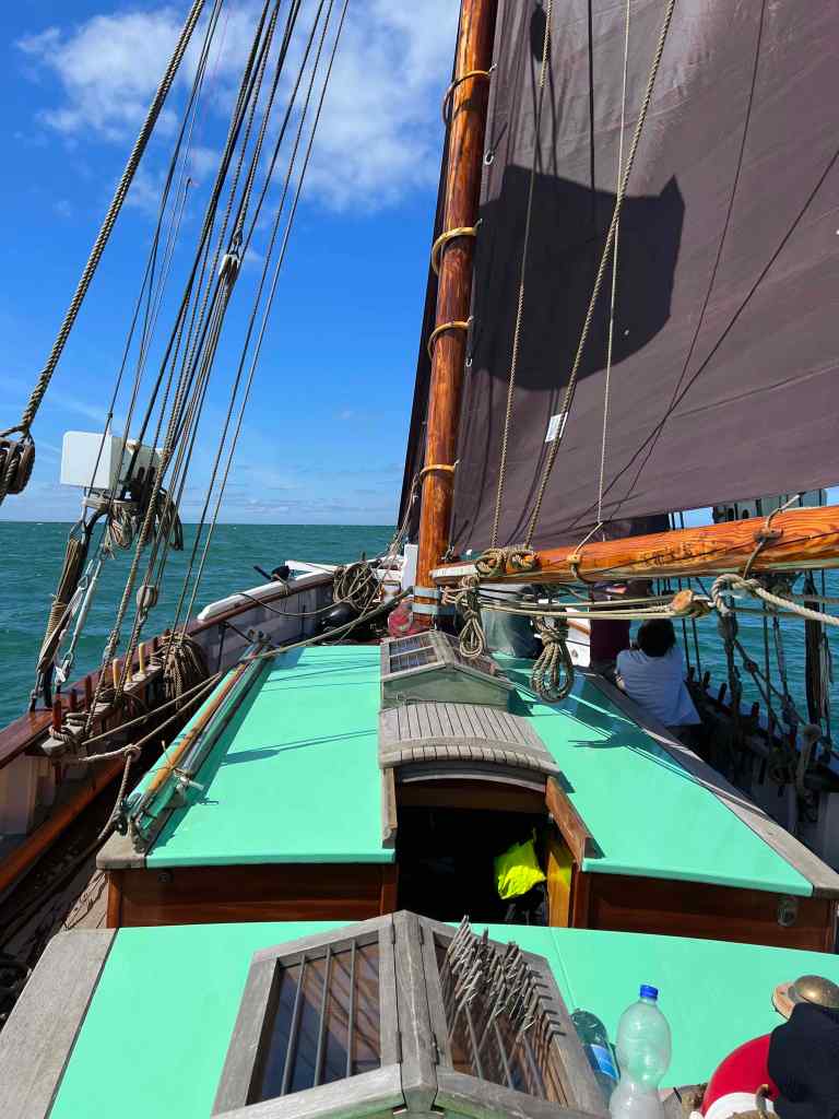 Backstagsbriese, 5Bft, wir rauschen gen Skagens Reef. Mit 7-8 Knoten Geschwindigkeit lässt die Aurora ihr Potenzial durchblitzen.