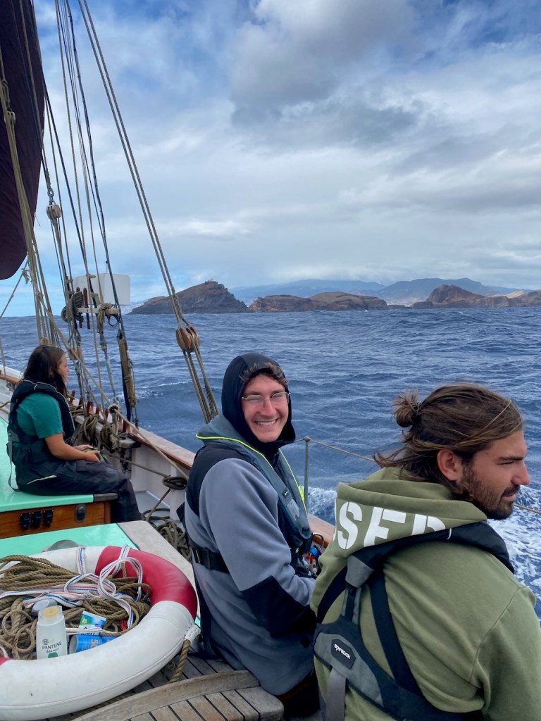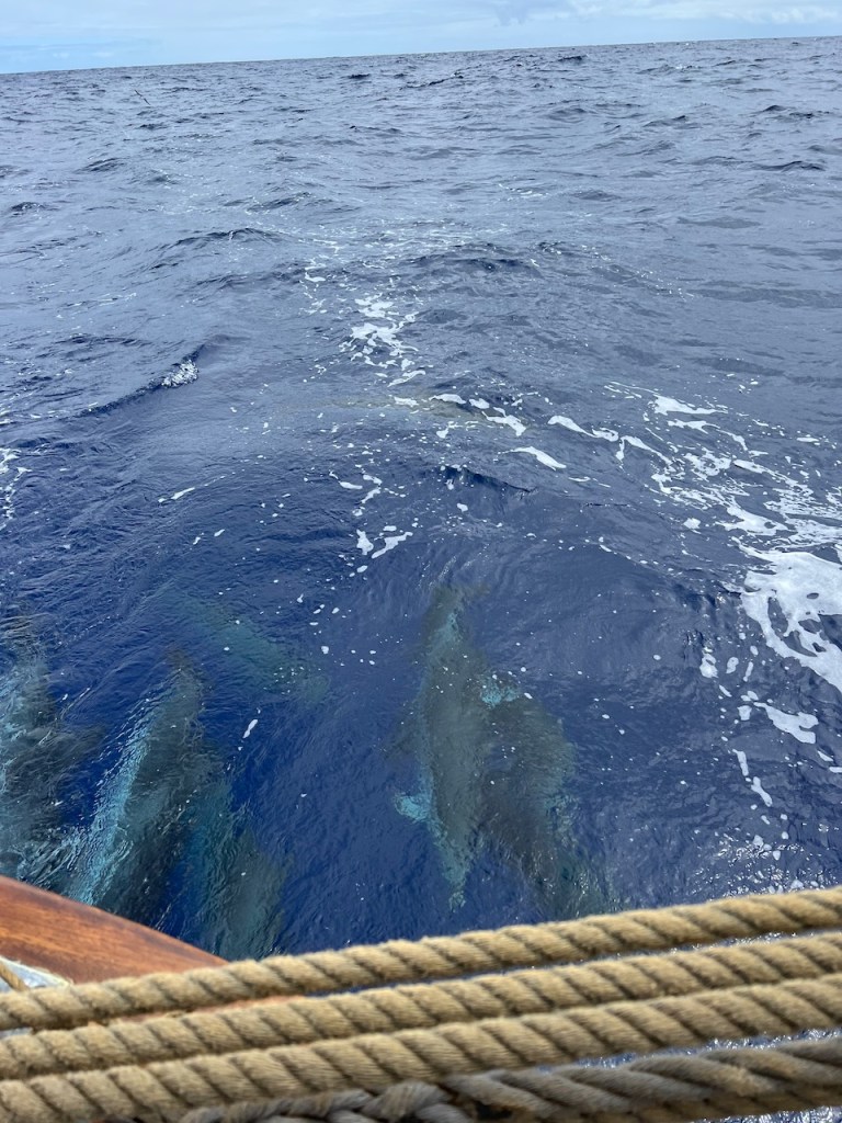 Dieses Schauerwetter hatten wir eine Nacht lang, bevor uns steter Nord Nordost die letzten paar hundert Meilen trägt. Am Ende der 4. Nacht taucht Porto Santo auf. Eine große Delfinschule und die wärmende Sonne begrüßen uns.