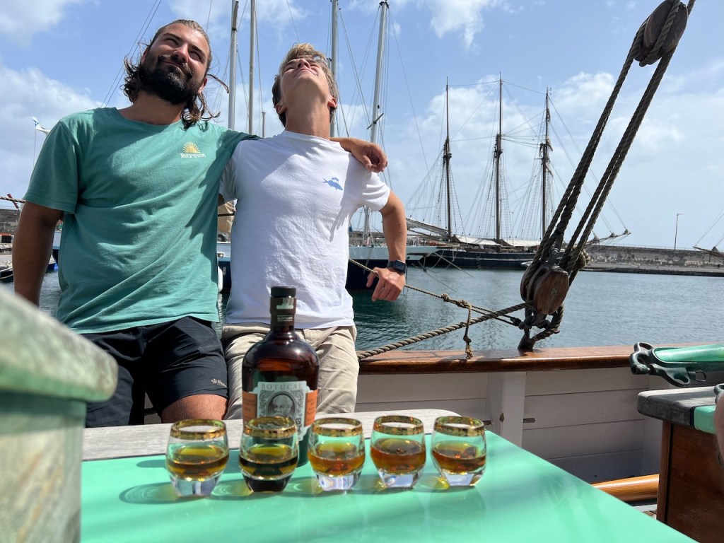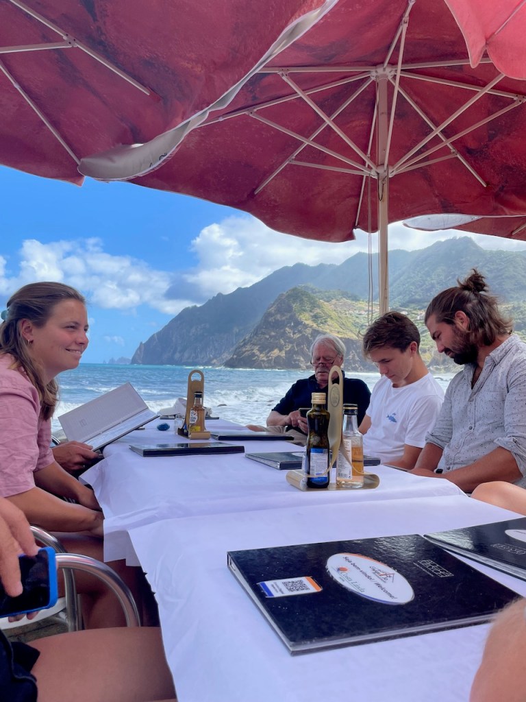 Das Erstaunen darüber mit Aurora nach Madeira gesegelt zu sein, hält an: Sowohl den Passagen-Rum, als auch den Sekt, den unser Freund Manuel uns bereits auf der Pier einflößt und dann die Getränke in der Hafenbar. Danach müssen wir erstmal schlafen.