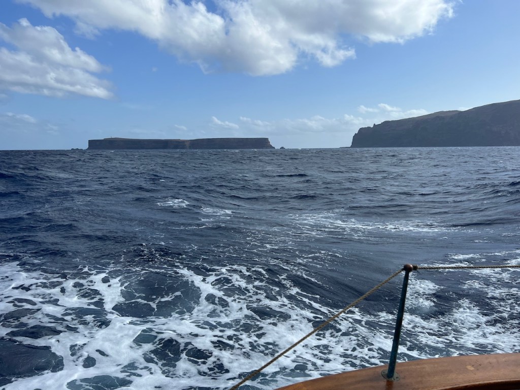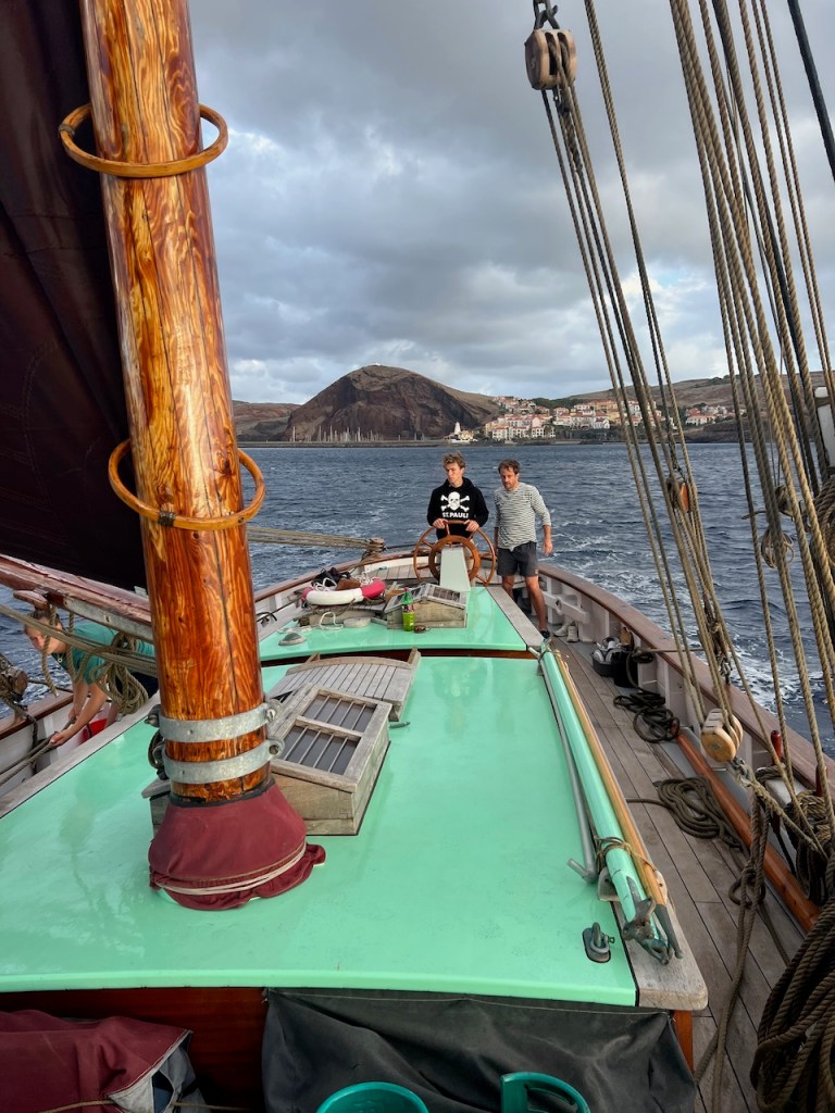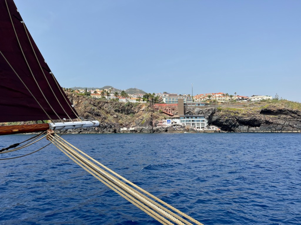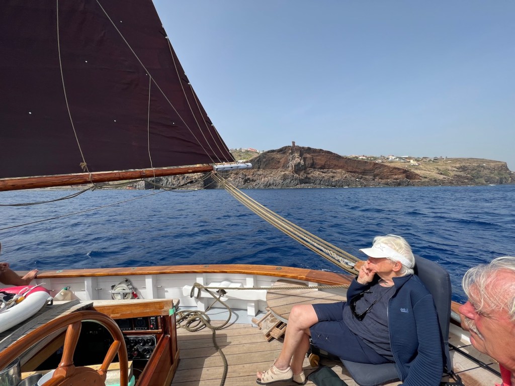 Mutter, Anneke und Horst werfen am 6. Oktober unsere Leinen los, wir setzen direkt vor dem Aussichtspunkt von Quinta do Lorde die Segel, fallen ab und rauschen zu den Islas Desertas. Die wollten wir schon immer von näher sehen. Sie sind wild, zerklüftet und komplett vegetationsfrei. Eben Desertas.