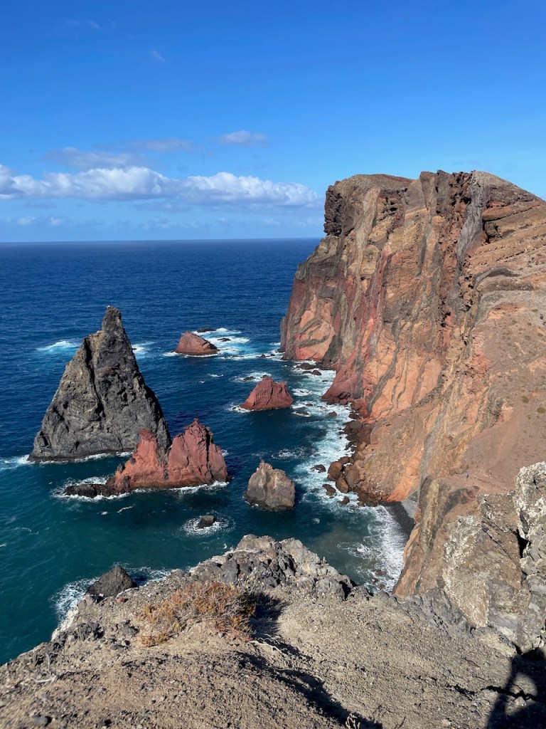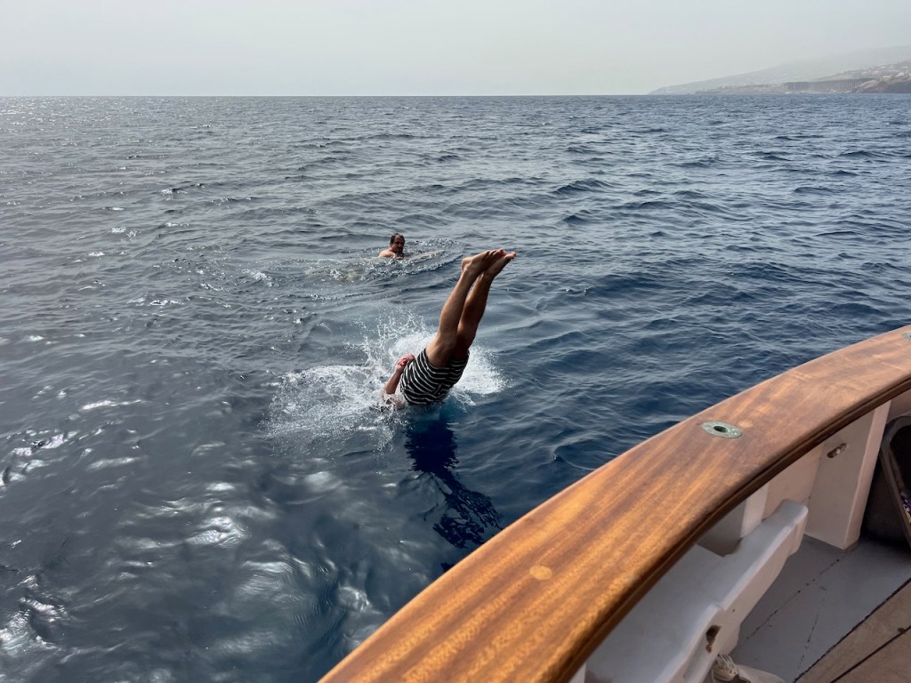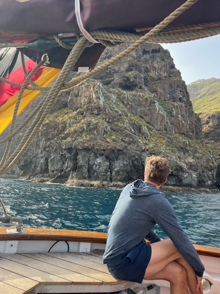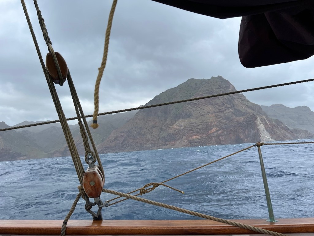 Mutter, Anneke und Horst werfen am 6. Oktober unsere Leinen los, wir setzen direkt vor dem Aussichtspunkt von Quinta do Lorde die Segel, fallen ab und rauschen zu den Islas Desertas. Die wollten wir schon immer von näher sehen. Sie sind wild, zerklüftet und komplett vegetationsfrei. Eben Desertas.