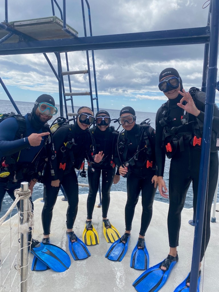 Tauchtag, 4 Schnuppertaucher, 3 freie Taucher und ein Freitaucher (Tom hat einen Apnoe- Kurs absolviert).