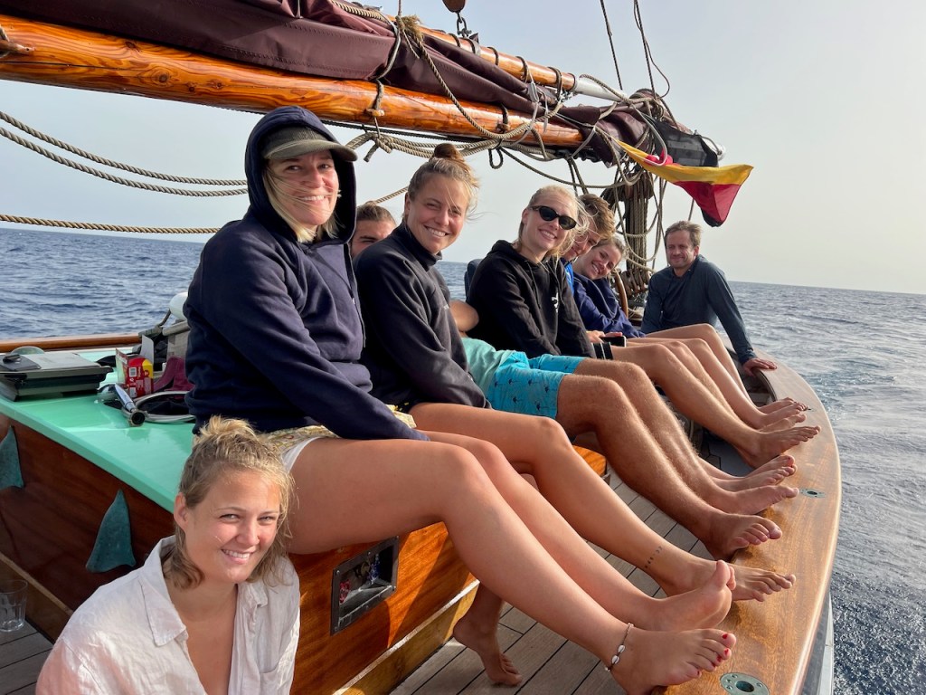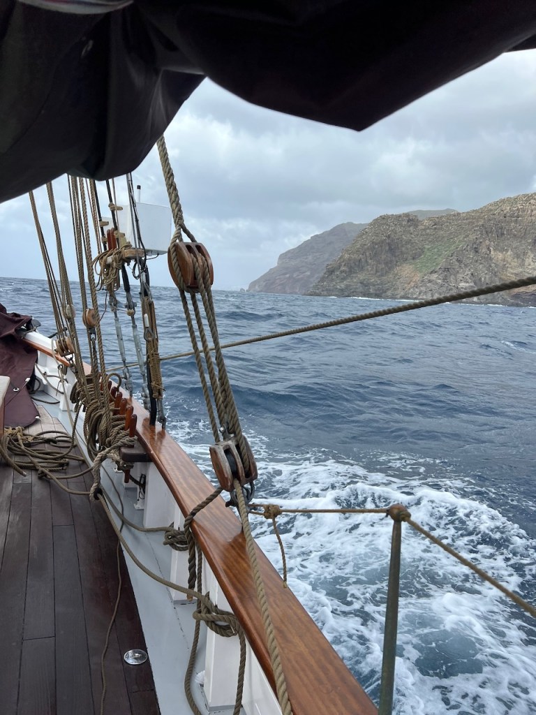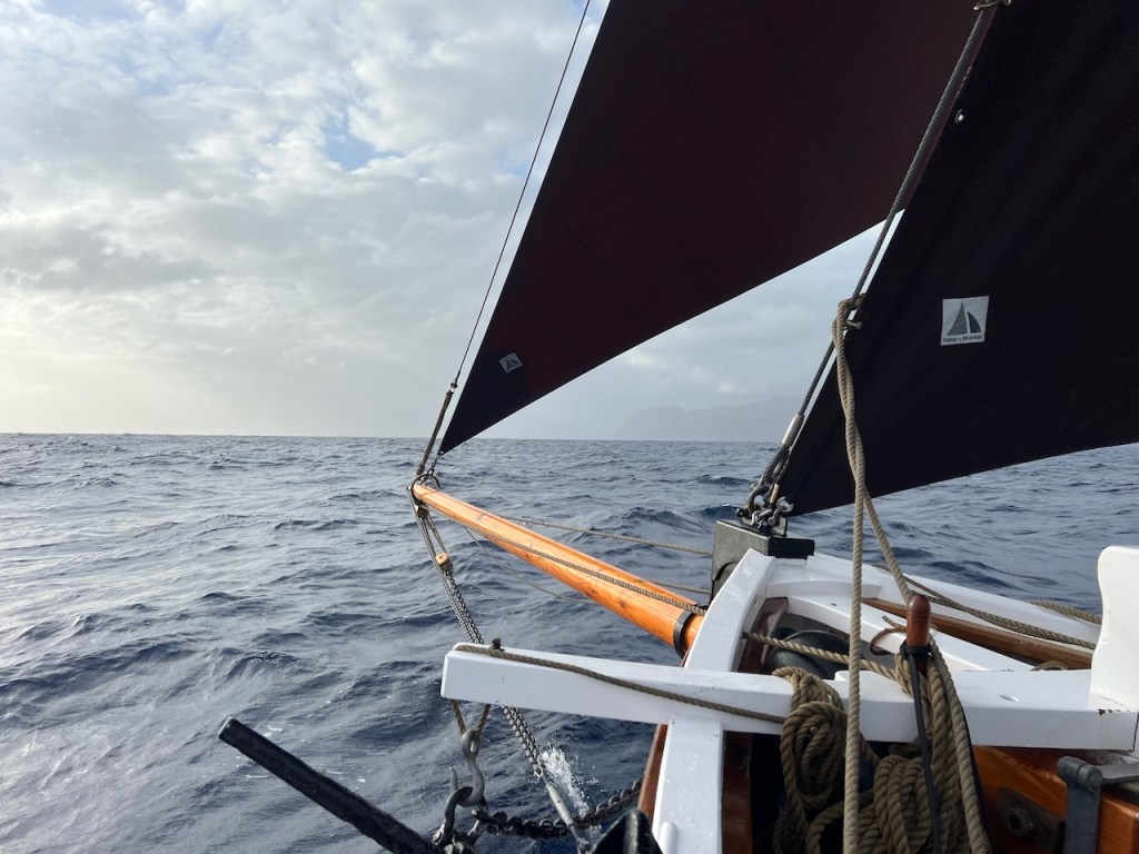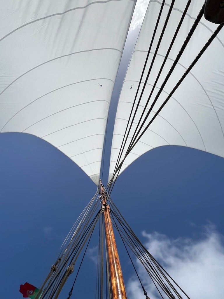 Dann kommt die Zeit für unsere neuen Segel. Die weißen Flügel entfalten sich und wir schweben vor Wind gen Kanaren.