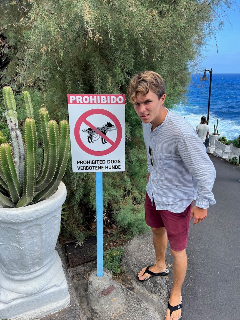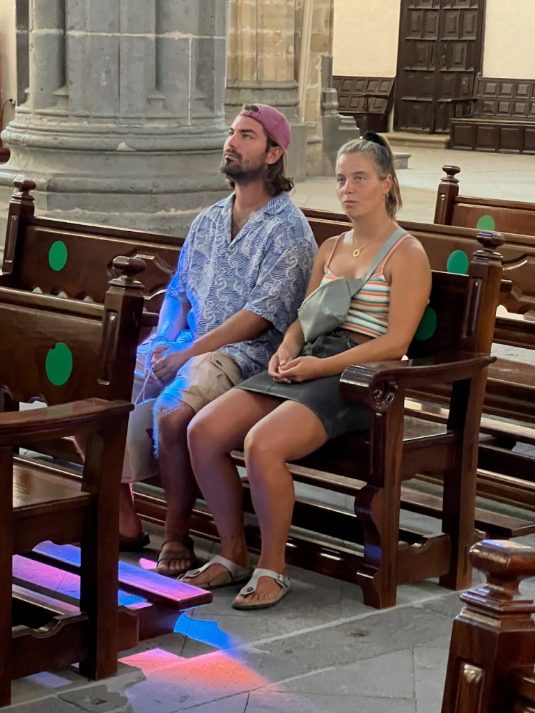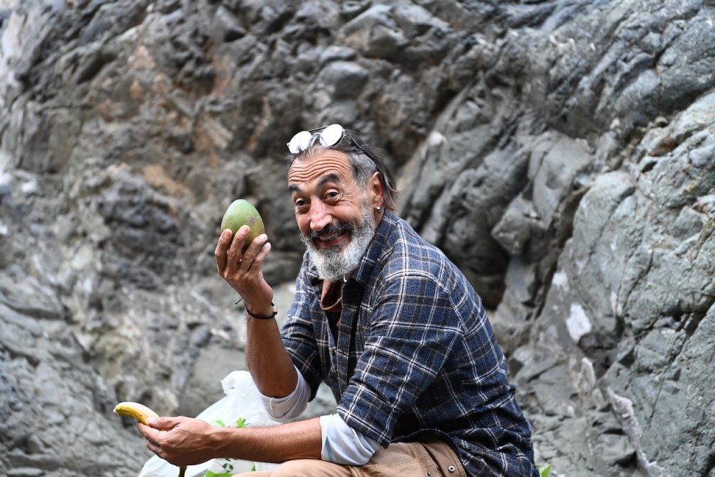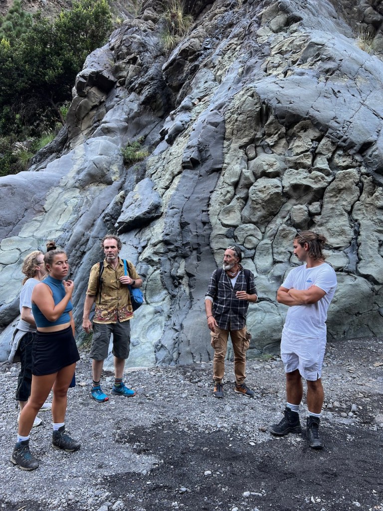 Schon beim morgendlichen Café an der Strandpromenade machen wir die erste spannende Bekanntschaft. Adoni der Baske. Ein unglaublicher Styler am Tisch neben uns, der mit allen Personen sofort lebhaft palavert. Und dann spricht er uns auf deutsch an. Also palavern wir auch lebhaft und verabreden uns für den nächsten Tag. Er ist Fremdenführer und will uns sein geliebtes La Palma näherbringen.