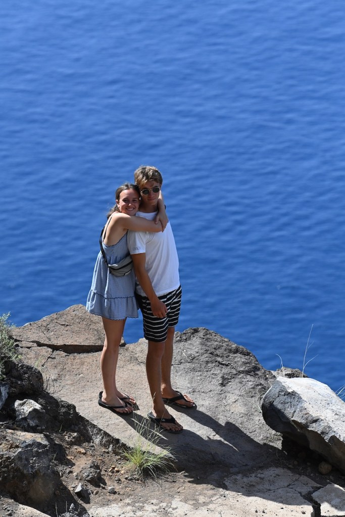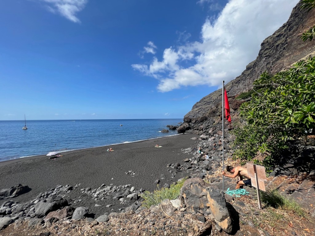 Ein Markt, ein nur über eine 300 Höhenmeter überwindende Trampeltreppe zu erreichendes Piratennest mit schwarzem Sandstrand (heiße Füße) und irrwitzig schmale, steile Straßen bestimmen unseren letzten Tag auf dieser schönen Insel.