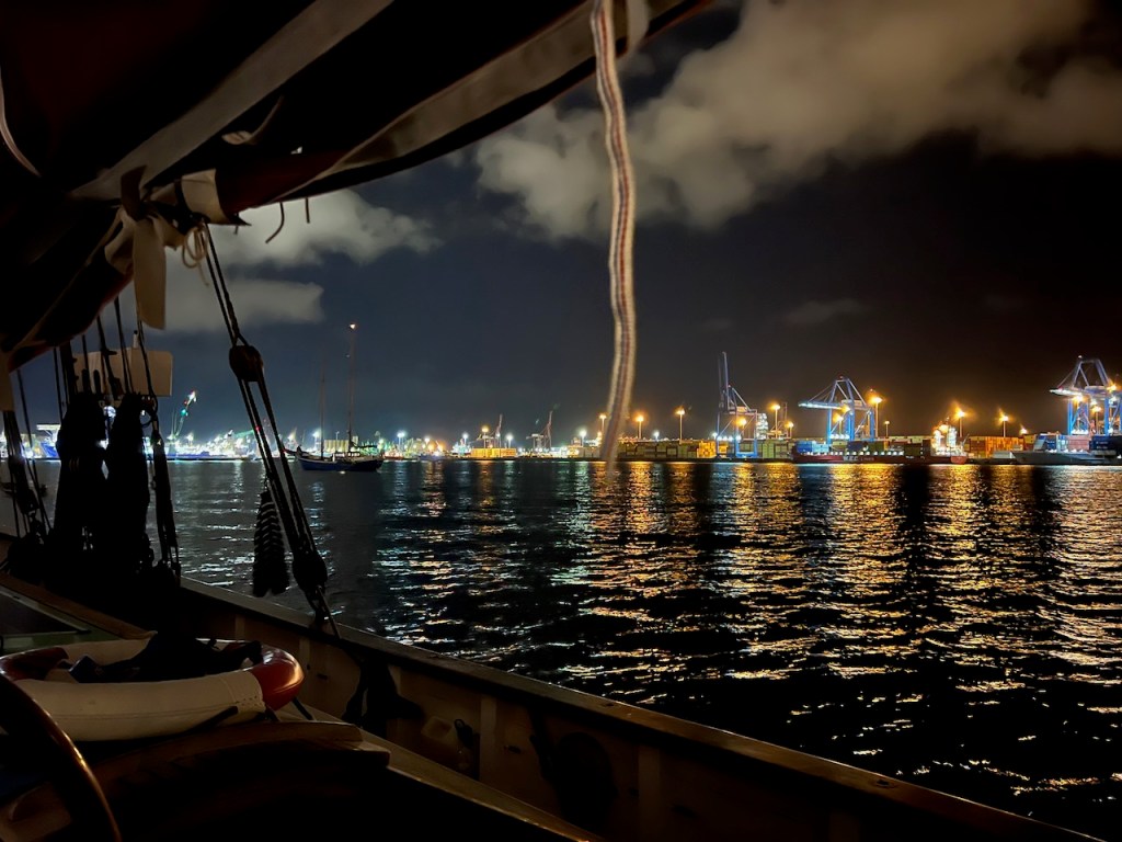Flaute, Flaute, Flaute. Einige hundert Runden UNO auf der Ruderbank später laufen wir in Taliarte ein. 8 Meilen vor Las Palmas. Aber die erlauben uns nicht anzulegen. Wir sammeln nur schnell Chiara und Jesper von der Pier und dampfen weiter zur Hauptstadt. Die hat zwar einen riesigen Hafen aber keinen Platz für uns. Die ARC, betreutes Segeln in die Karibik, blockiert die Plätze. Egal, es gibt vorm Hafen eine geschützte Ankerbucht. Die nehmen wir mit hunderten Anderen. Uns bleibt fast eine Woche. Die angesagten Nicht-Winde und der Mangel an geschützten Buchten ist der Grund. Also, viel Arbeiten am Schiff vor der nächsten großen Passage. Viel Laufen durch die Stadt. Viel Einkaufen. Und ganz viel Strand und Baden. Gyde, Bosse und Ole bauen jeden Tag Staudämme, die jeden Tag von der Flut zerstört werden. Wir sind einfach keine Holländer.