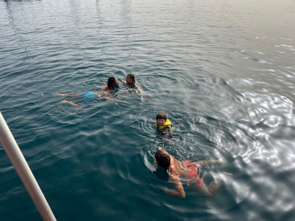 Die 40 Meilen beginnen wir im Sonnenaufgang, um sie nach 2 Stunden Motorflautenfahrt für einen ausgedehnten Bade- und Frühstücksstopp zu unterbrechen.