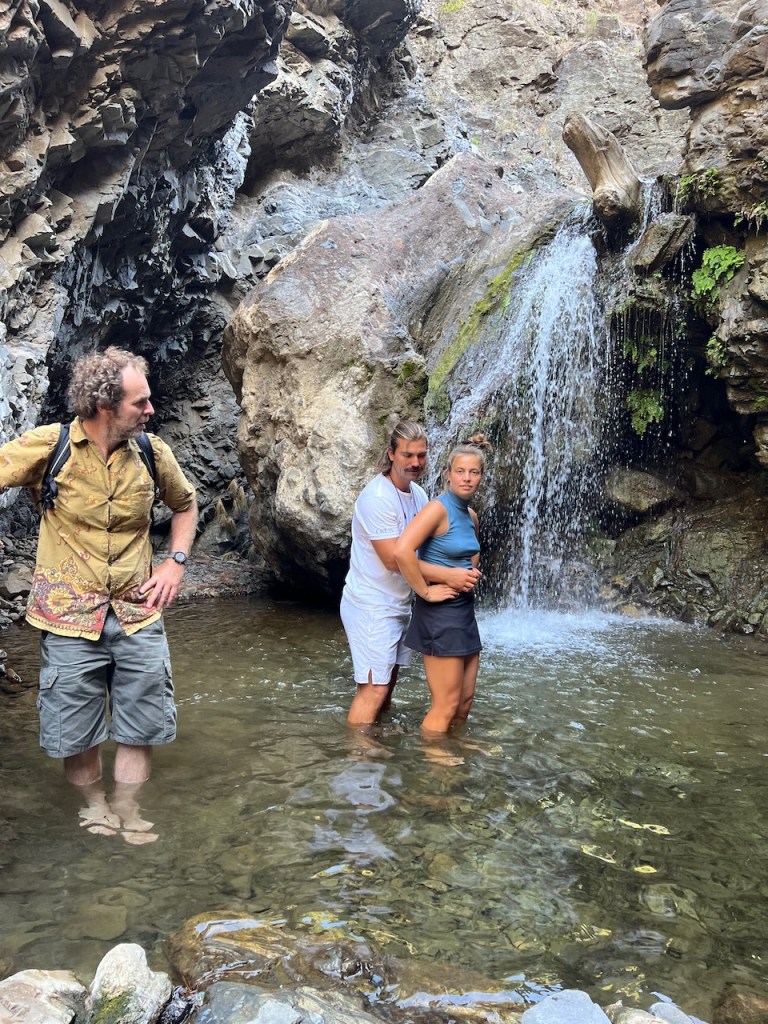 First Stopp ist ein Regenwald. Harte Wanderung zu einem Wasserfall, obwohl eigentlich nur Jespers Schnurrbart hart anzuschauen ist.