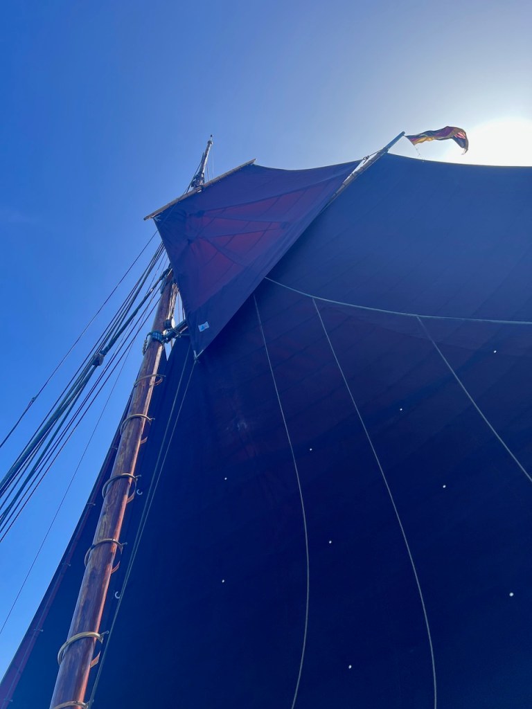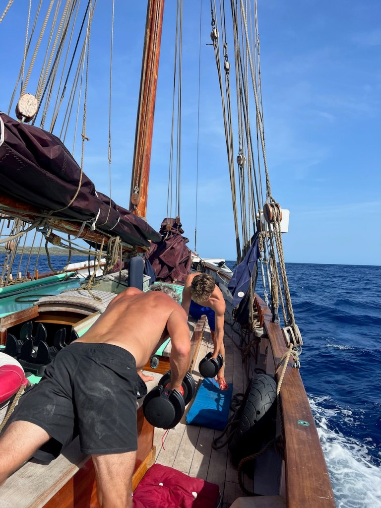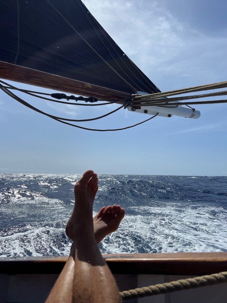 Teilweise hatten wir sogar Wind. Topsegelbriese eingerahmt von Flaute.