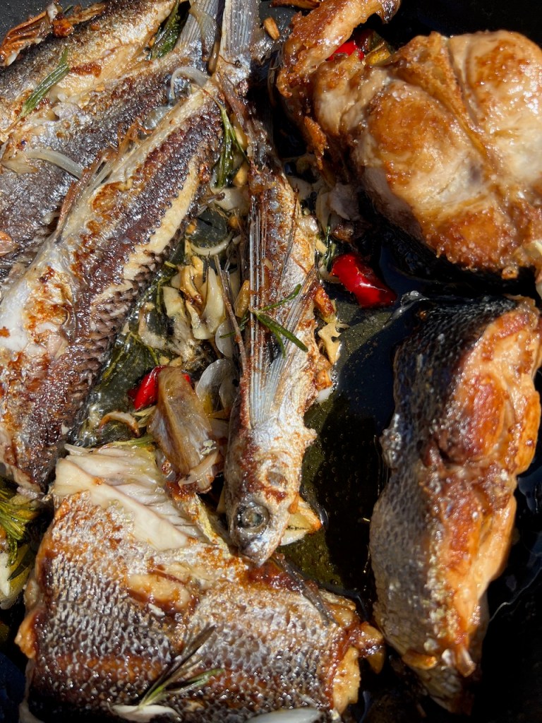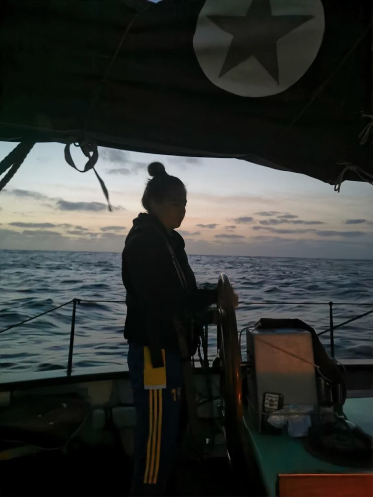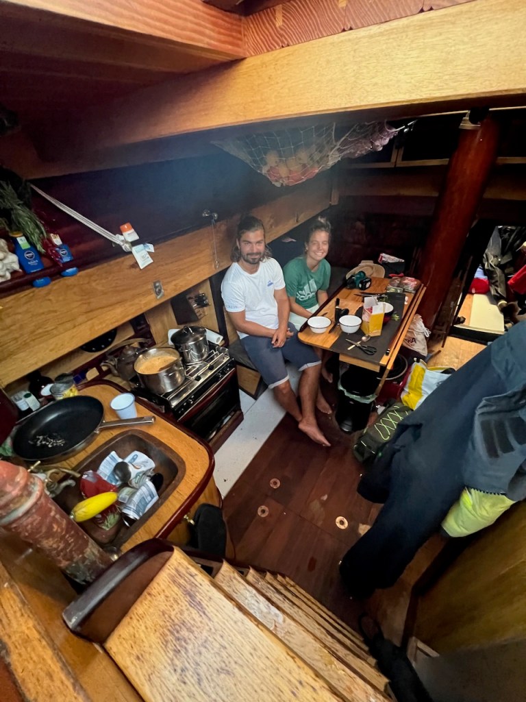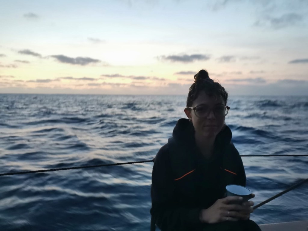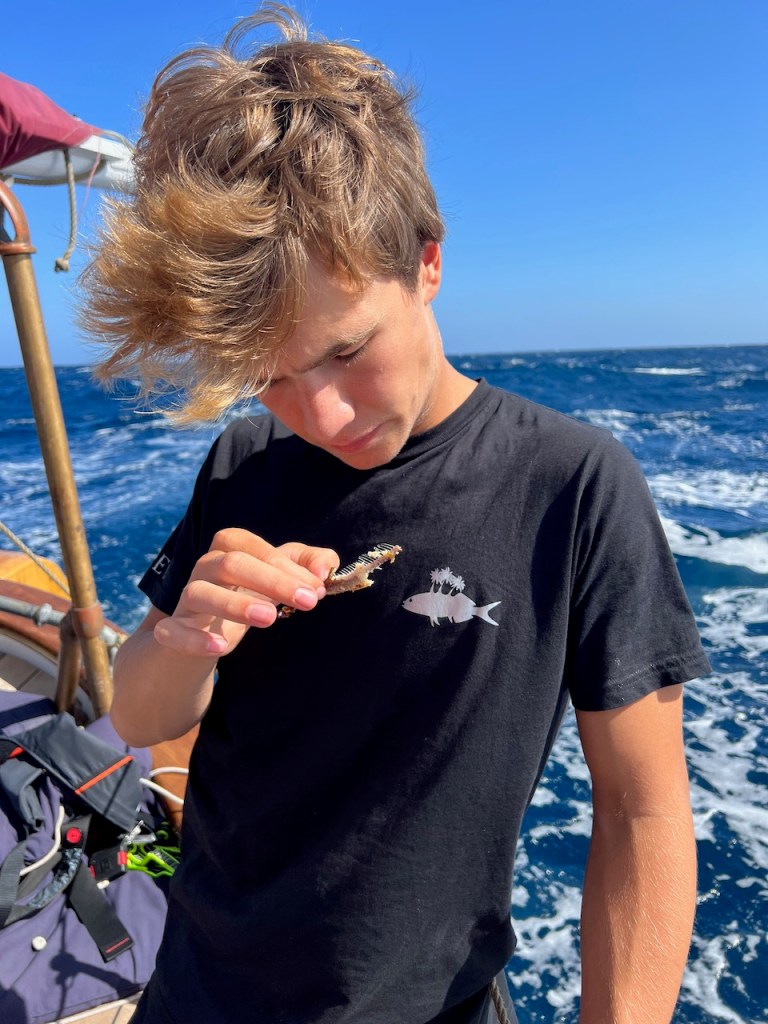 besonderen Vorkommnisse. Um 10 Uhr Frühstück (natürlich mit Fisch), anschließend Kraftsport auf dem Vorschiff und Körpergewichtsübungen auf dem Achterdeck, Kaffee und Kekse zum Nachmittag und ein mega leckeres Curry um 18 Uhr kurz vor der Dunkelheit. Zwischendurch viel Lesen und Austauschen über die neu erlernten Sterne und Sternbilder aus der letzten Nachtwache.