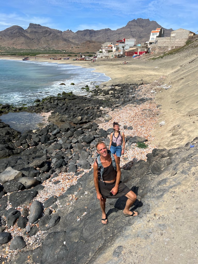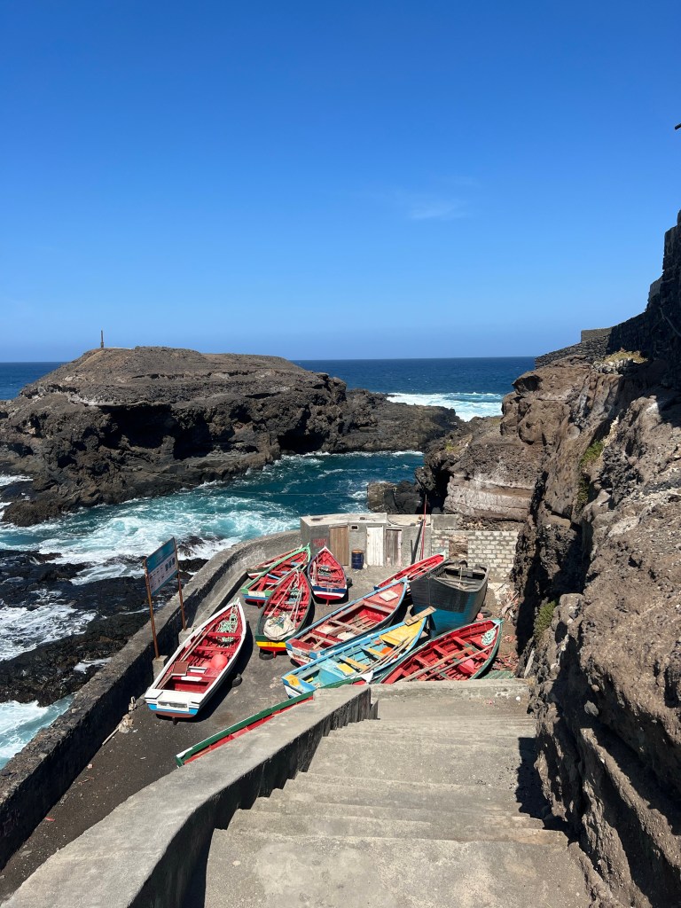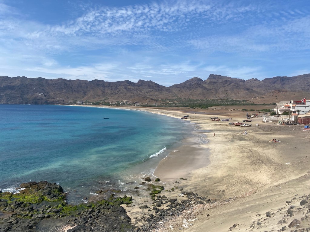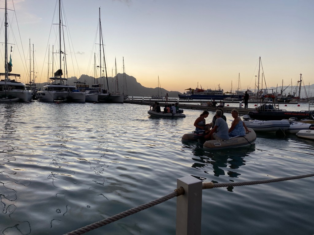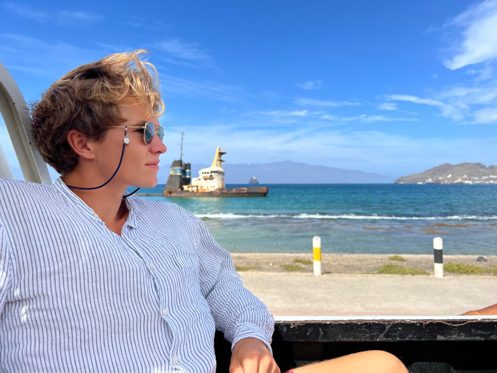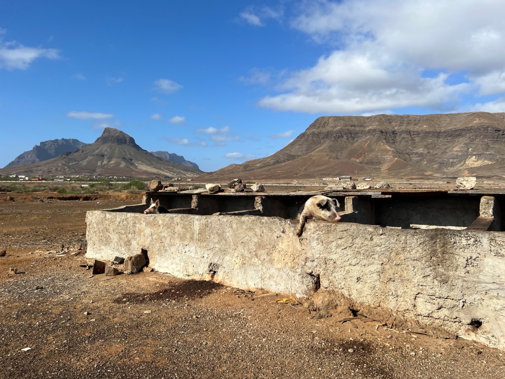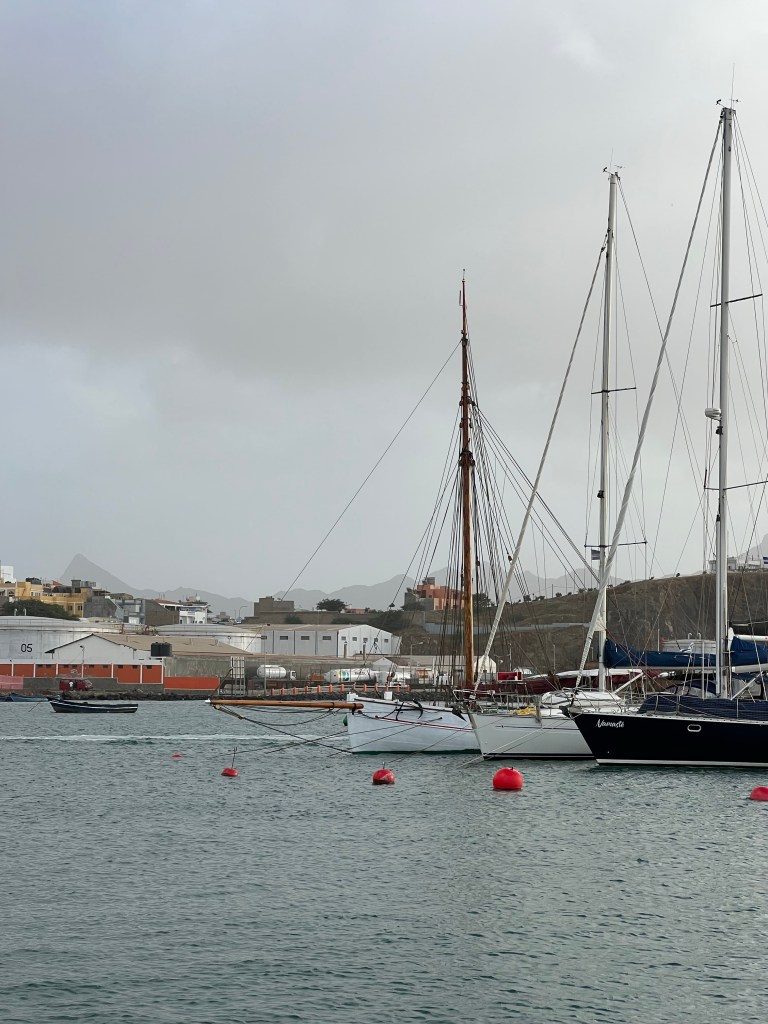 Hier residiert Samba, König des Marktes, sehr dunkelhäutig, würdevoller Kahlkopf, Sonnenbrille, langes einfarbiges Gewand – sein Bruder lebt in München (auf 450.000 Einwohnerinnen auf den Inseln kommen 720.000 Emigrant*innen im Ausland – das Leben auf den Inseln ist und war nie einfach… und die Rücküberweisungen sind auch für die Republik Cabo Verde ein wichtiger Wirtschaftsfaktor: Ohne Überweisungen aus dem Ausland haben es Familien hier schwer…). Samba spricht flüssig deutsch – über die Verhältnisse auf den Inseln – nicht zu viel Korruption – die lokale Wirtschaft und Politik, aber vor allem das Leben der Menschen – sehr liebenswert mit seiner ruhigen, humorvollen Art – über die Zeit entsteht eine kleine Freundschaft.