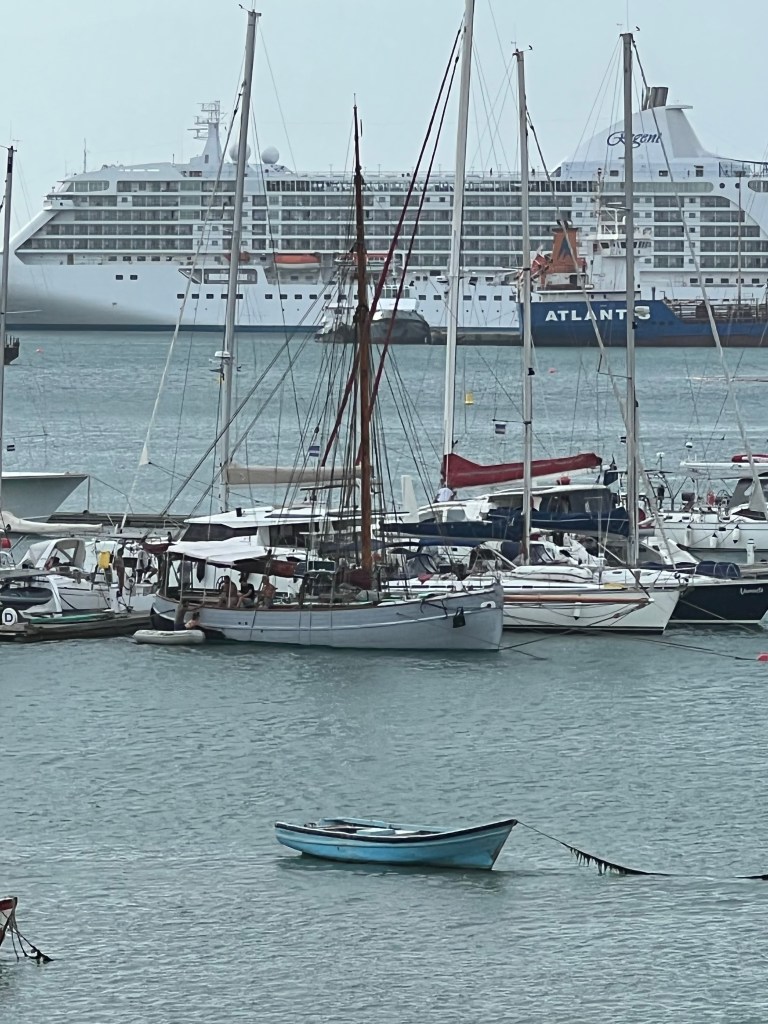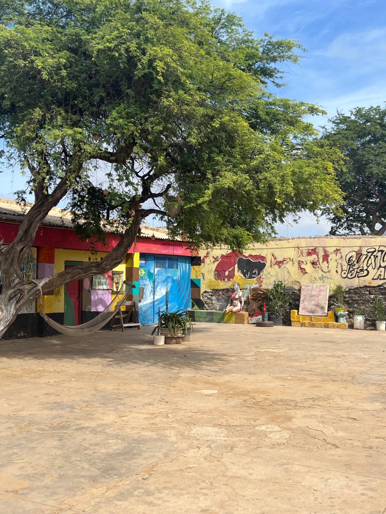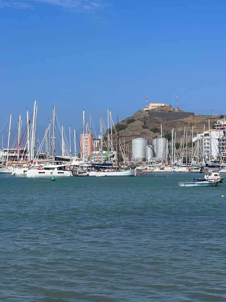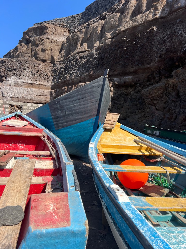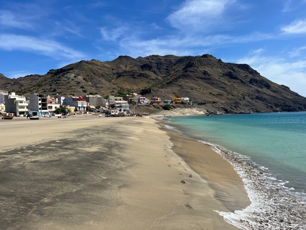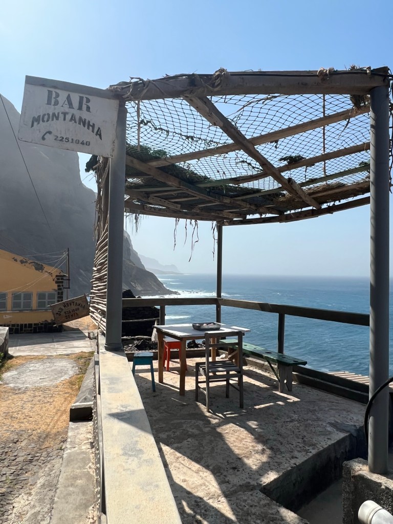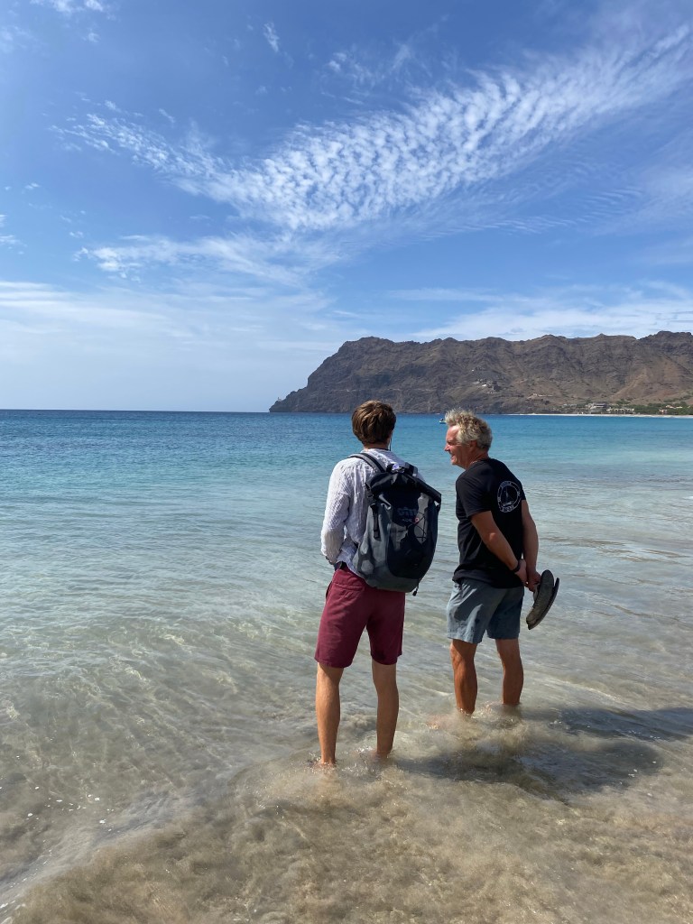 Hier residiert Samba, König des Marktes, sehr dunkelhäutig, würdevoller Kahlkopf, Sonnenbrille, langes einfarbiges Gewand – sein Bruder lebt in München (auf 450.000 Einwohnerinnen auf den Inseln kommen 720.000 Emigrant*innen im Ausland – das Leben auf den Inseln ist und war nie einfach… und die Rücküberweisungen sind auch für die Republik Cabo Verde ein wichtiger Wirtschaftsfaktor: Ohne Überweisungen aus dem Ausland haben es Familien hier schwer…). Samba spricht flüssig deutsch – über die Verhältnisse auf den Inseln – nicht zu viel Korruption – die lokale Wirtschaft und Politik, aber vor allem das Leben der Menschen – sehr liebenswert mit seiner ruhigen, humorvollen Art – über die Zeit entsteht eine kleine Freundschaft.