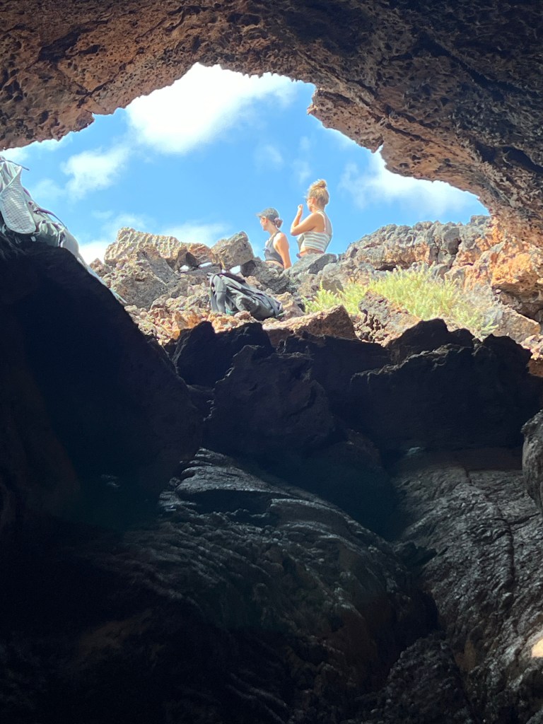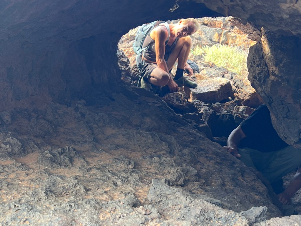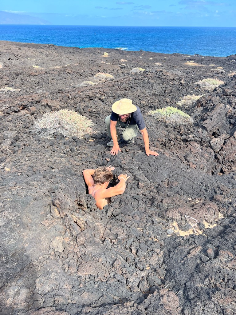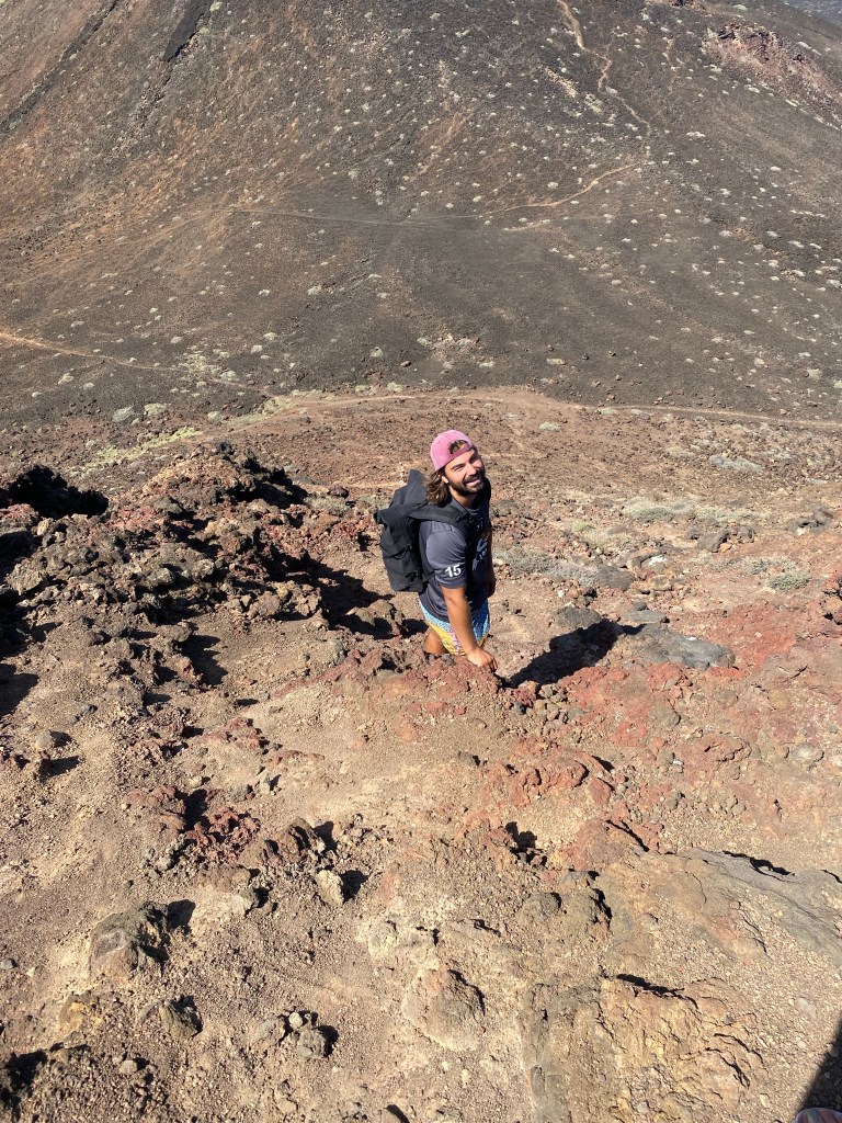 Mindelo mit kleinem Containerkai, ab und zu ein Kreuzfahrtschiff – auf Sao Vincente gibt es eigentlich sonst nichts. Sahelzone, steinige Wüste – 5 Regentage im Jahr, 100mm – wir bekommen kaum einen grünen Halm zu sehen, während wir per Aluguer über die Pisten schraddeln. Die Kisten sind alle total auf, klappern und rattern herzerweichend unter dem Gewicht von bis zu 17 Erwachsenen plus Dachlast. Die Fahrer und die Fahrgästinnen sind guter Dinge, da sind wir es auch. Vor den Fenstern Steine und Staub und Lava in verschiedenen Farben. Über ausgedehnte bröckelige Lavafelder schottern wir uns auf einen Vulkankegel. In dieser Landschaft gibt es nichtmal Insekten und nur eine einzige Art Gewächs hat anscheinend eine Strategie gefundene – alle 150 Meter versteckt sich ein Sträuchlein in den Lavaspalten.