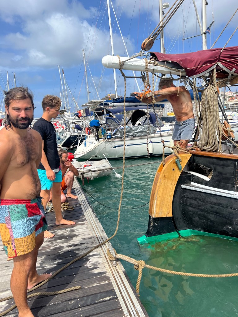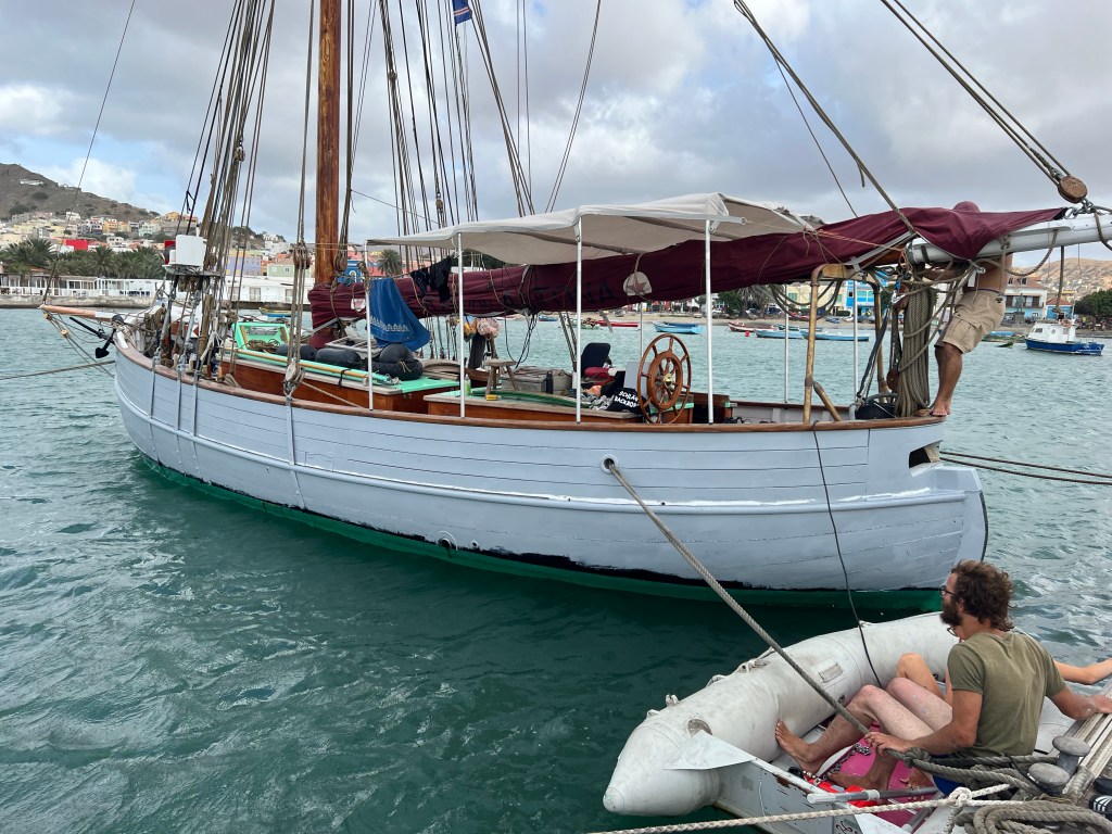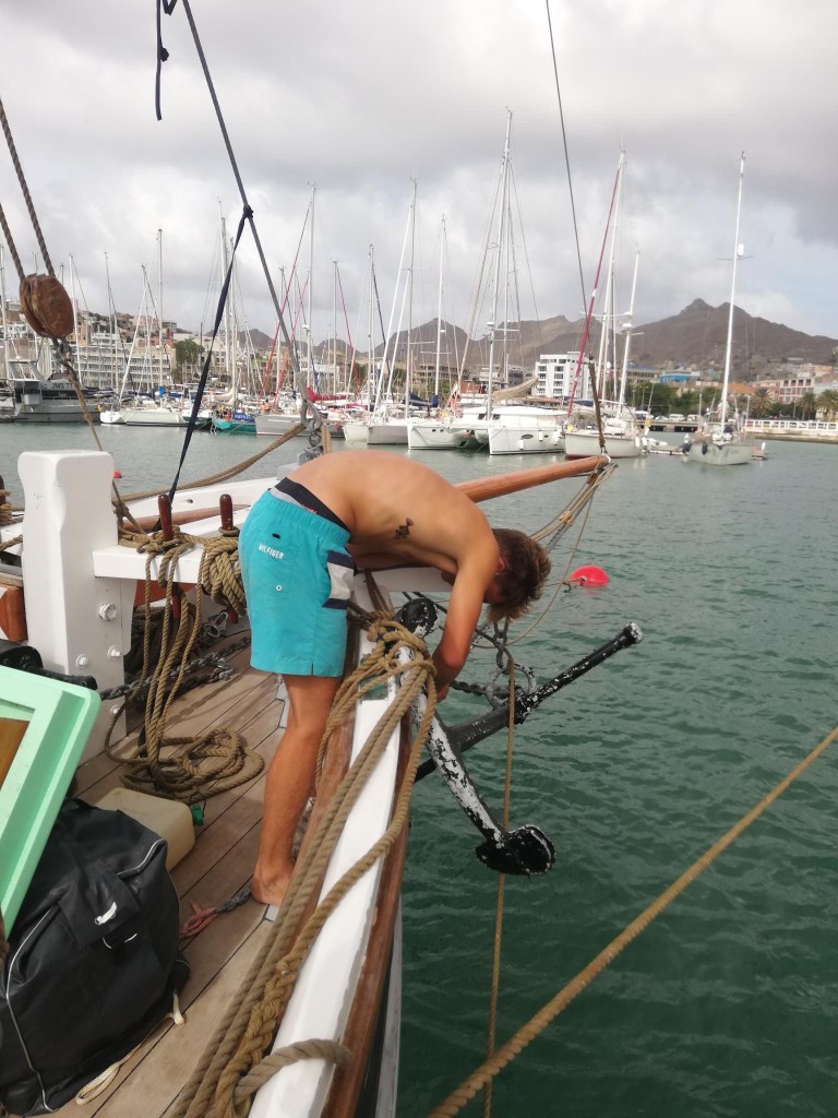Ja – Abschied in Etappen – Dienstagabend wurden wir überraschend in eine aufregende Schatzsuche verwickelt, die schließlich ziemlich alkoholseelig am Stadtstrand endete. Obwohl das Unternehmen unter Mitwirkung mehrerer Mindolaner*innen stattfand konnten wir uns des Eindrucks nicht erwehren, dass Tom und Jesper irgendwie die Finger mit im Spiel hatten. Donnerstag gegen 12 bleibt Mindelo im Kielwasser zurück – der Atlantik hat uns wieder…