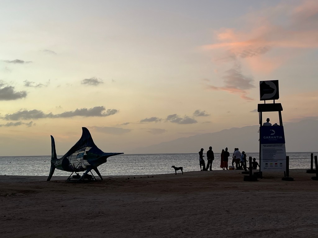 Kein Platz in der Marina – como sempre. Also Anchorage, Rum, das Bild der Stadt, die Geräusche, Gerüche, offene Fischerboote mit 6,7 dunkelhäutigen Männern tuckern scheinbar ziellos umher, Schildkröten, Sonnenuntergang – langsam näher kommen.