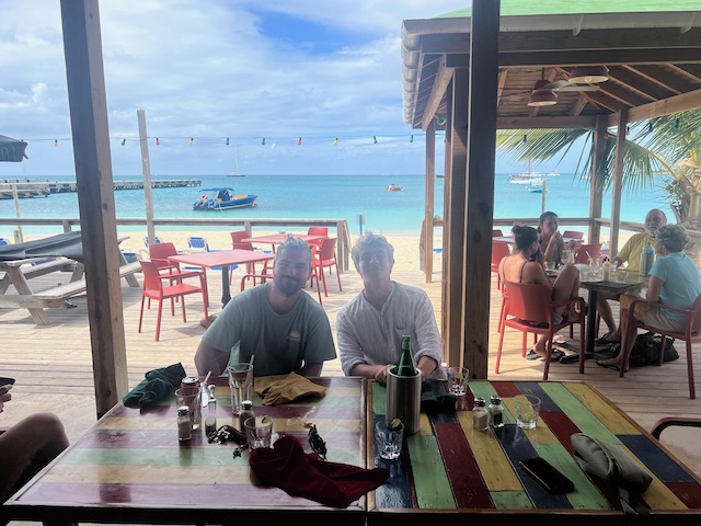 Im Sonnenuntergang fällt unser Anker in der romantischen Bucht von Grand Case, dem kulinarischen Hotspot von St. Martin. Restaurants jeglicher Ausrichtung, sowohl Fisch als auch Meeresfrüchte, säumen den weißen Strand. Auch für den kleinen Geldbeutel. Das alles lesen wir jedoch erst am nächsten Morgen als wir bereits unterwegs sind. Egal, uns zieht es zum Schwimmen und Schnorcheln in die Naturschutzgebiete.