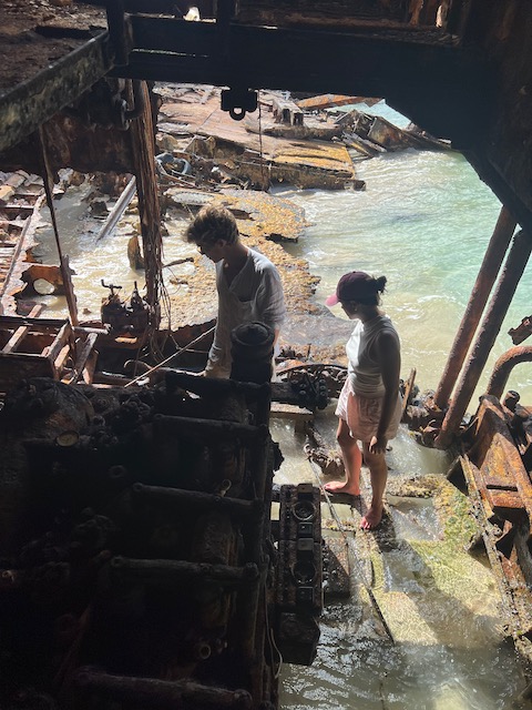 Auch dort ist es mit 2,2 Metern erschreckend wenig tief, bitte keine steilen Kopfsprünge. Dafür ausgeprägtes Schwimmen (der weibliche Teil der Crew ist jeden Tag 20 Minuten im Wasser und lässt sich dafür von Jesper in Bier belohnen), kurze Strandspaziergänge und Restaurant vorchecken. Die Insel ist von Riffen umgeben, allein auf dem sich 10 Meilen langstreckenden Südriff sind über die Jahrhunderte mehr als 300 große und unzählige kleine Schiffe zerschellt. Ein Paradies für Taucher, nur wieder nicht für uns, die Entfernungen sind zu groß, unser Schlauchboot zu klein.