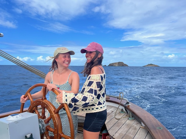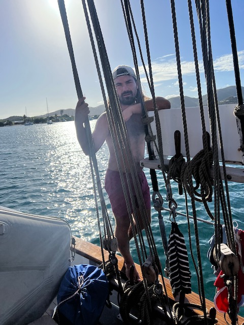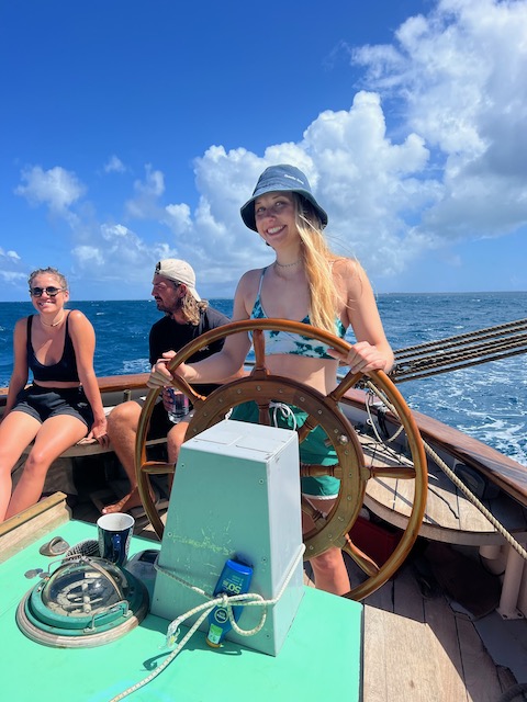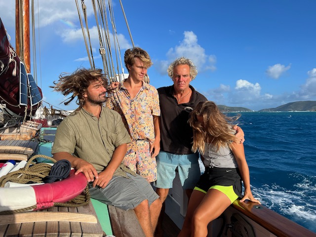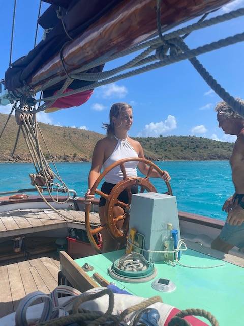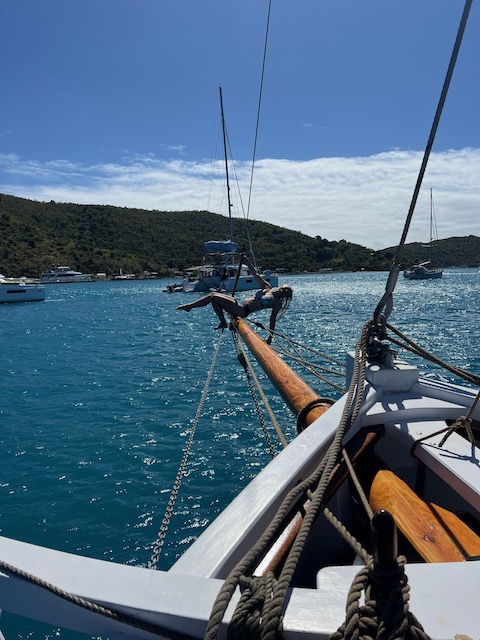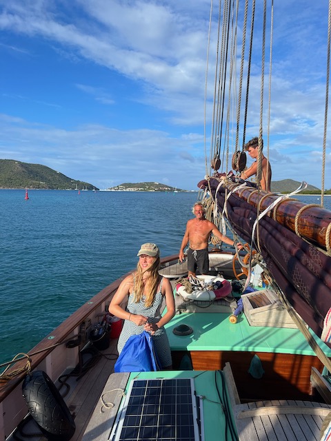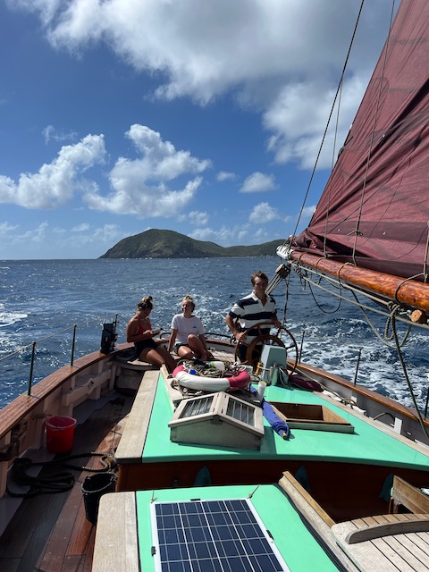 Die Sterne funkeln am Firmament als wir den Anker lichten und mit geblähten Segeln in die Nacht brausen. Wache um Wache wechseln sich ab, der Rhythmus aus unruhigem Schlaf und Pflicht an Deck ist für manche ungewohnt, aber die Mägen haben keine Probleme mit der Schaukelei. Die Wellen, die schon in der Ankerbucht spürbar waren, sind jetzt beeindruckend, lassen die Aurora ordentlich rollen. Durch die Nacht bis mittags die Abdeckung der Ersten Insel, Lost Jerusalem, das Wasser glättet. Jetzt hoch am Wind gleiten wir durch die Perlenkette der British Virgin, bis nach Spanish Town auf Virgin Gorda.
