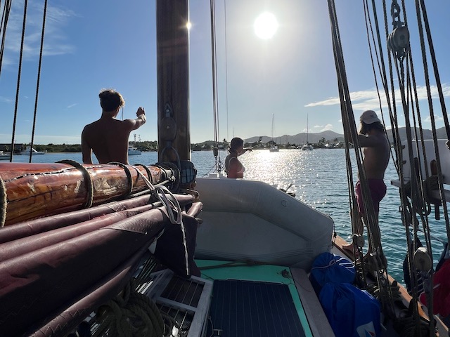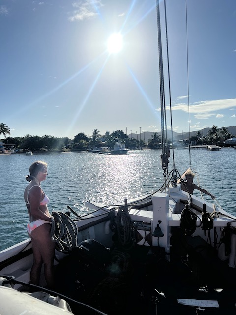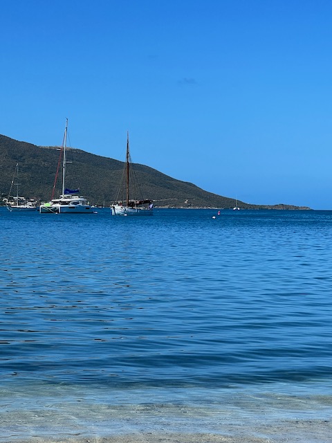 Irgendwann schippert Chris, auf dem Weg zu seinem Morgenkaffee, vorbei und verkündet uns, dass die Öffnungszeit kürzlich auf 8:30 verlegt wurde, ach ja, und 17.00 Uhr. Freiheit ade. Ab an den Anker und den Tag mit Spaziergängen, Spielen, Lesen, Schiffsarbeiten und Faulenzen verbringen.