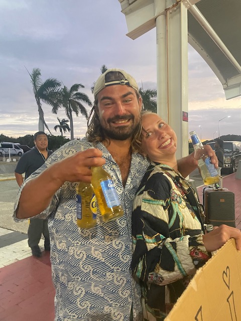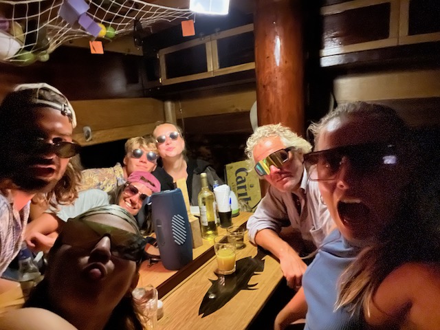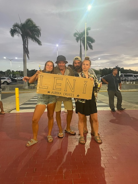 In der Bar, es ist natürlich Happy Hour, verfertigen wir ein Begrüßungsschild für Lena, der Supermarkt ergänzt die ausgedünnte Schiffsverpflegung. Großes Hallo nach der Landung, perfektes Ankommen.