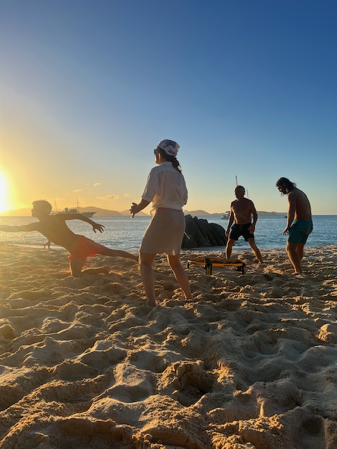 Den nötigen Appetit erarbeiten wir uns im Meer. Lange schnorcheln wir durch die Riffe, begleitet von Rochen, Schildkröten und unzählbar vielen kleinen Fischen. Wilde Spikeball Matches tragen das Ihre dazu bei, die Schlemmerei im Sonnenuntergang wird ein Fest.
