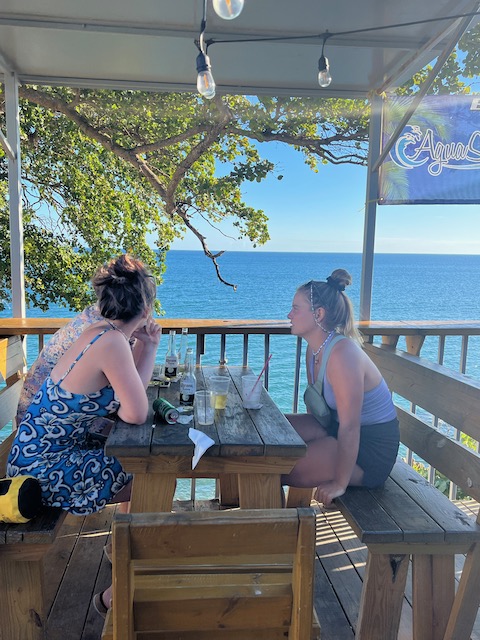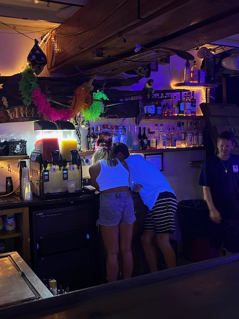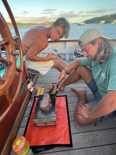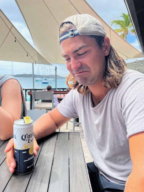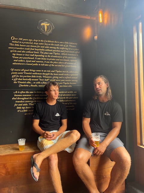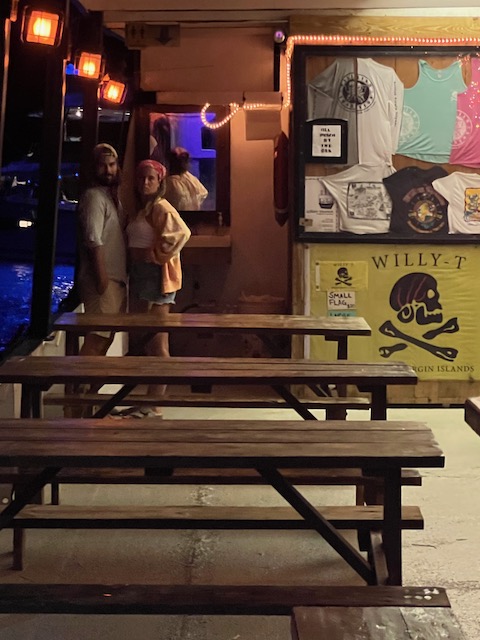 Charly und Meme sind voller Flugangst und Restalkohol mit einer Propellermaschine entschwebt, konnten von oben sehen, wie wir die Bucht verlassen und Kurs auf Spanish Harbour nehmen. Eigentlich waren wir dort schon, es ist nicht so schön. Aber Tom hat eine Verabredung zum Essen. In einem der besten Restaurants der Karibik, mit den Füßen im Sand, Fusion- Food vom Sternekoch, wer kann da schon nein sagen. Also zieht er mit einem breiten Lächeln und Oles Kreditkarte los und hat einen großartigen Abend. Wir essen Burger in einer Bude.