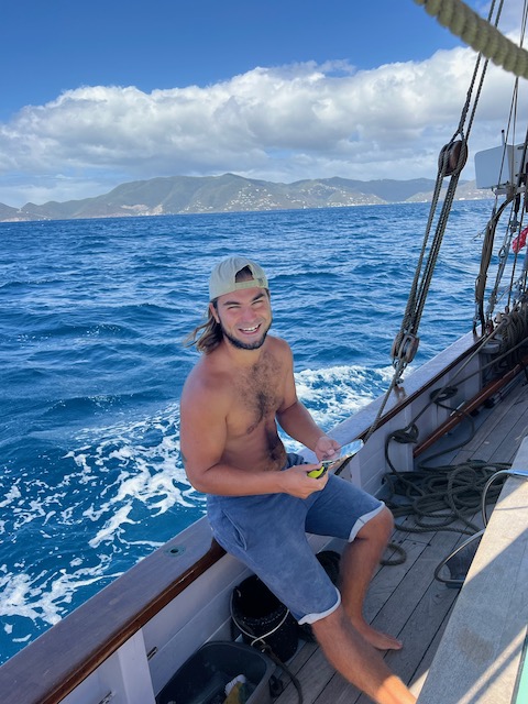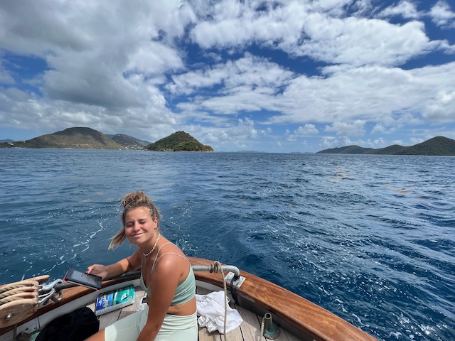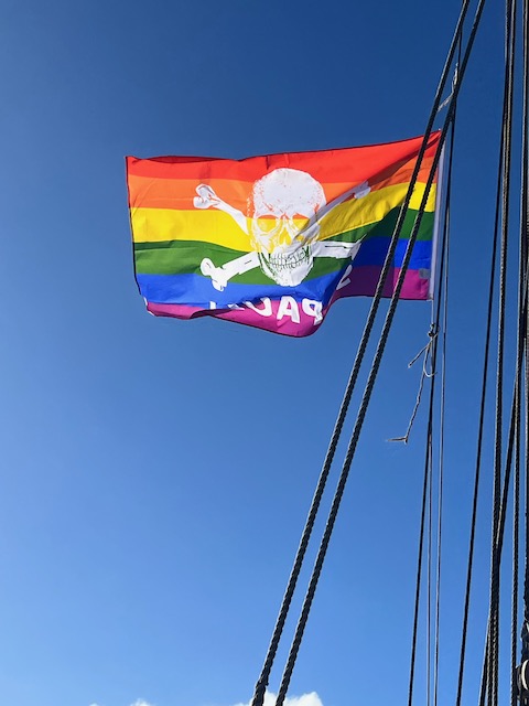 Mit gefülltem Wassertank geht es weiter gen Westen, vorbei an Fallen Jerusalem, Ginger Island, Cooper Island nach Salt Island. 1867 wurde hier der Royal Mail Steamer Rhone von einem überraschenden Hurrikan auf die Klippen geworfen und versenkt. Als schön bewachsenes Wrack kann man sie schnorchelnd betrachten. Das Trümmerfeld ist riesig und trotz der langen Zeit unter Wasser kann man viel entdecken, wie ein mächtiges Ruderblatt und die Dampfkessel. Zudem werden wir von einem Hai begleitet, wahrscheinlich heißt er Kai. Als es anfängt zu dämmern verlassen wir das Naturschutzgebiet und gehen mit letztem Licht in Great Harbour, Peter Island, vor Anker. Die erhebliche Grunddünung machte den von uns angestrebten Ankerplatz in Deadman´s Bay unbrauchbar. Dabei soll hier ein Schatz zu finden sein und in den Zeiten der finsteren Piraten hat der finsterste von allen, Blackbeard, auf der vorgelagerten Insel Dead Man´s Chest, 15 Männer ausgesetzt. Mit einer einzigen Flasche Rum. Daher das berühmte Lied.