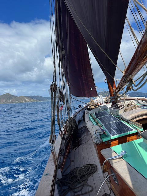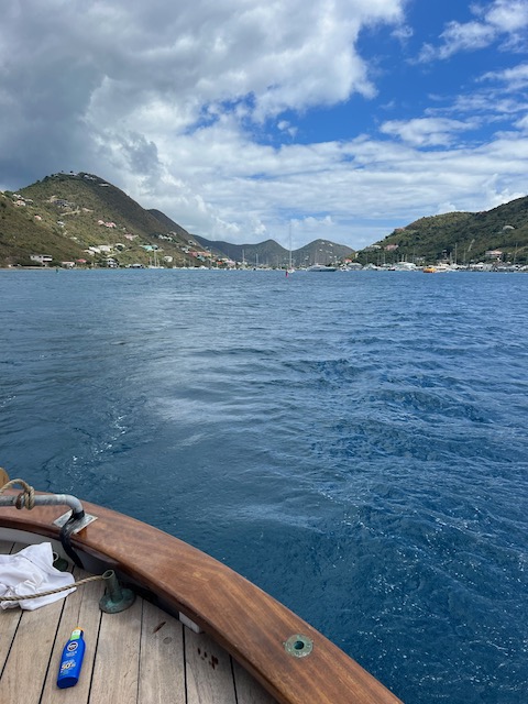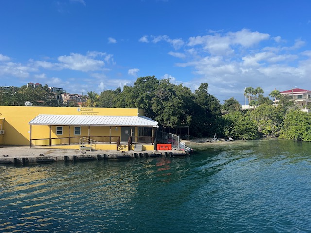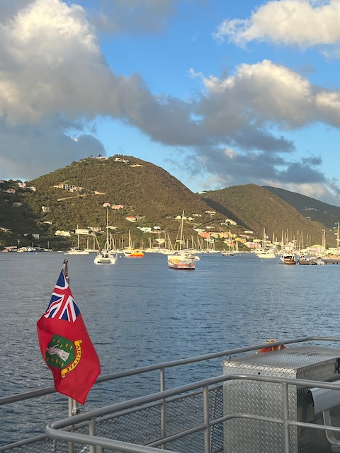 Den Abend und die Nacht verbringen wir in The Bight, Norman Island. Direkt neben der William Thornton, einem Partyboot auf dem heute allerdings alles ruhig bleibt. Versuche eine Tanzparty zu starten scheitern kläglich. Worüber wir uns am nächsten morgen freuen, denn eine Schatzsuche ist in frischer Verfassung angenehmer. Vor Treasure Point erwartet uns eine Parkmooring und trotz der frühen Stunde auch viele Charterkats mit vielen Schnorchlern. Entweder haben die all das Gold schon eingesammelt oder es gab keins. In keiner Höhle finden wir eine Unterstützung für unsere Reisekasse, Mist. Also Diesel sparen, Segel hoch und nach einer herrlichen Seefahrt in der billigen Village Cay Marina, Road Town Tortola anlegen. Der Teil der Stadt, den man anschauen mag, befindet sich an einer einzigen Straße. Der Rest ist unerfreulich und Kreuzfahrergetto. Aber, es gibt einen richtig guten Schlachter, einen chaotischen Supermarkt, eine Waschmaschine und einen sicheren Liegeplatz am Steg neben vielen gesunkenen Yachten, Opfern von Irma. Den brauchen wir, da wir von hier, ausgestattet mit Esta-Visa, mit der Schnellfähre nach Cruz Bay auf St. John, US Virgin Island fahren. Nach einer kurzen Prozedur erhalten wir unsere Einreisestempel und werden weiter nach St. Thomas gefahren. Hier vertrödeln wir 6 Stunden, bis uns die Fähre zurück nach Road Town bringt. Die Aussagen, ob diese Art der Visabeschaffung legal ist, variieren. Immerhin ist es legitim und verschafft uns hoffentlich die Möglichkeit über die USVI nach Puerto Rico zu segeln statt in internationalen Gewässern direkt zur Dominikanischen Republik. Mal sehen.