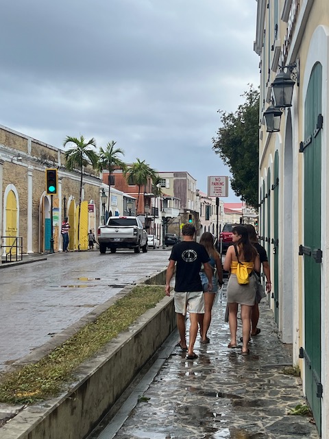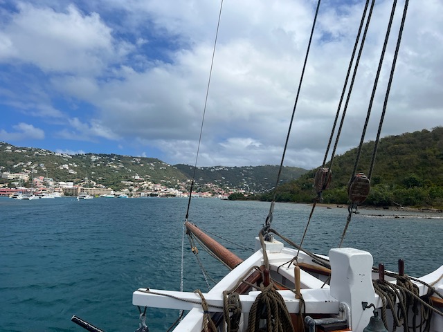Erstmal segeln wir noch an Tortolas Westseite, Sopers Hole. Hier können wir ausklarieren und im Abendfrieden unser unbeschreiblich gutes Fleisch grillen.Der englische Amtsschimmel wiehert noch etwas, durch hohes Tagestouristen Aufkommen dauert das Ausklarieren über 2 Stunden, dann jedoch setzen wir Segel gen USA. Die Seestrecken bleiben kurz, so fällt bereits mittags der Anker bei der Hafeneinfahrt von Cruz Bay und wir gehen leicht nervös an Land. Dann 10 Minuten Fragen und Stempel, das wars. Offiziell eingereist, enjoy your stay. Baff und erfreut befreien wir Aurora von der Sandbank und setzen nach St. James über, wieder nur 5 Meilen. Mit dem nun offenstehenden Puerto Rico, samt den vorgelagerten Inseln, beschließen wir den notorisch touristischen Virgin Islands bald den Rücken zu kehren, endlich wieder längere Strecken zu segeln, in einem Land mit Stolz und Kultur. Die Kultur wollen wir allerdings noch ein letztes Mal hier suchen. In Charlotte Amalie, der Hauptstadt von St. Thomas.