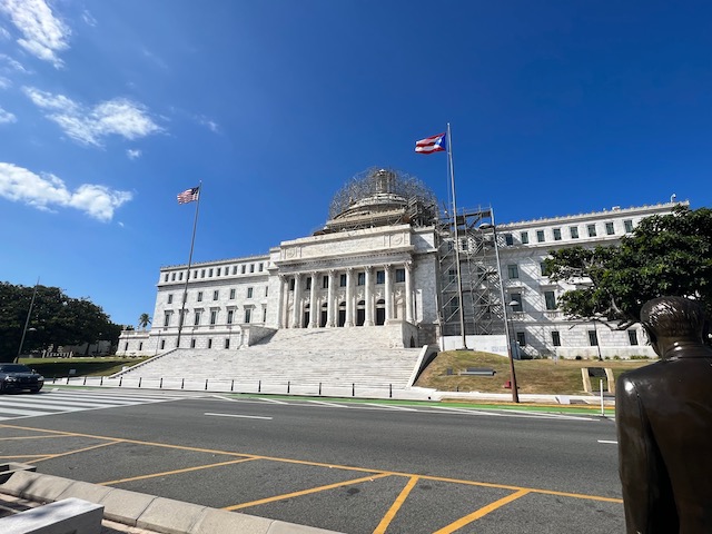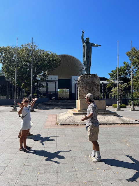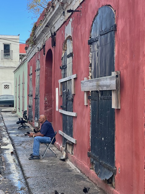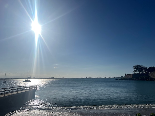 Um den Kontakt zu zwei netten Menschen reicher tuckern wir im Morgengrauen hinaus in die Flaute. Wir wollen gerne 2 Tage in die Hauptstadt, also müssen wir Strecke machen, ca. 40 Meilen nach Ponce. Das alles zu motoren droht langweilig zu werden, dann allerdings springen rund um uns Buckelwale aus dem Wasser, Wind kommt auf und es wird ein fantastischer Segeltag. Der Hafen ist allerdings von den Teilnehmern einer Wettangelei überfüllt, so ankern wir davor. Mit viel Ankerkette und der Zusage eines Yachtseglers ein Auge auf Aurora zu haben fühlen wir uns sicher und fahren mit einem Mietwagen nach San Juan. 2 Tage erwandern wir diese wundervolle Stadt. Viel Geschichte, viele alte Häuser, viele nette Menschen, wildes Nachtleben, gemütliche Ferienwohnung.