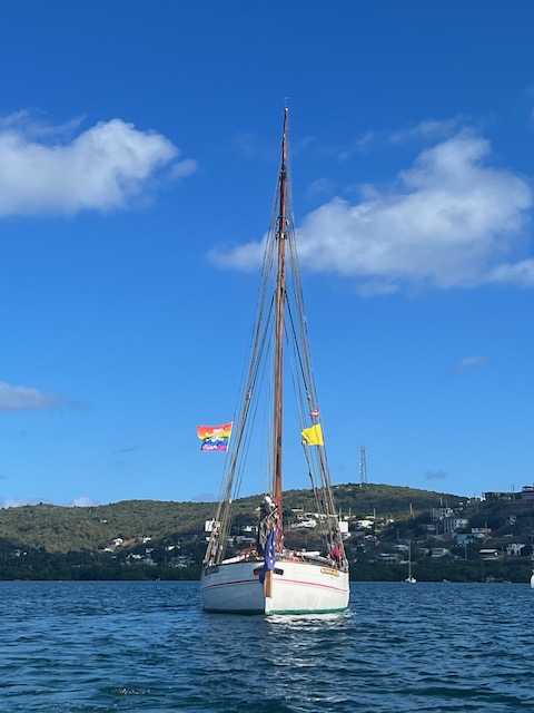Nach einem kurzen Stopp in der Honeymoon Bay auf Water Island, der einzigen Insel mit natürlichem Wasservorkommen (rund um die Insel warteten die Piraten und konnten auswählen wen sie belästigen da alle Schiffe hier Wasser bunkern mussten), auf der wir die Kultur – stehe übergewichtig bis zum Bauch (der natürlich in einem Muscleshirt in USA-Flaggen Design steckt) im Wasser und trinke Cocktails – der Amerikanischen Freizeitflotte kennen lernen, fahren wir in den Hafen der ehemals Dänischen Insel. Dänemark besaß drei größere Inseln: St. John, St. Thomas und St. Croix. Hier wurde der Dreieckshandel in Perfektion getrieben. Zuckerrohr für die Flensburger Rum Destillerien (damals Dänisch), transportiert von den Schiffen die vorher Sklaven aus Afrika geholt hatten, bezahlt mit Glasperlen und Nippes aus Flensburg. Reste der Plantagen sind heute noch zu bestaunen. Rund um dieses Geschäft prosperierte die Stadt, große und wirklich schöne Häuser wurden errichtet. Als der Gewinn aus Zuckerohr einbrach und das Besitzen von Sklaven nicht mehr so en vogue war, verkaufte Dänemark 1917 die Inseln für 25 Millionen Dollar an die USA. Die wollten verhindern, dass ein Schurkenstaat wie Deutschland ein Standbein in der Karibik bekam. Diese alten Gemäuer, steingewordene Kultur und Beweis, dass man Hurrikan fest bauen kann, beherbergen jetzt unzählige Juweliergeschäfte für die unzähligen Kreuzfahrttouries. Immerhin gibt Aurora verankert vor der Altstadt ein schönes Bild ab. Also, das war es auch nicht, tschüss Virgins. Puerto Rico wir kommen. In der Bucht von Ensenada Hunda, umschlossen von der schönen Insel Culebra werfen wir Anker. Kaum andere Freizeitboote, nur ein Charterkatamaran. Der Weg zum Amt am Flughafen führt durch eine geschäftige Siedlung, alle Menschen sind fröhlich und höflich.