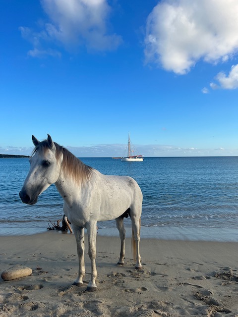 So auch der Immigration Officer, alles kein Problem und da wir uns online angekündigt hatten geht es schnell. Er freut sich über unsere gestempelten Pässe, vor allem für uns, da es ohne die Visa 645 $ Strafe gekostet hätte, pro Person. Es ist eine ganz andere Welt und obwohl es von den Amerikanern dominiert wird fühlen wir uns auf Anhieb wohl. So auch auf unserem nächsten Stopp, einer paradiesischen Bucht, Ensenada Sun Bay auf der Insel Vieques. Der palmengesäumte endlose Strand lädt ein zum Spike Ball spielen, nur beobachtet von einem alten Pferd und einigen Locals. Windstill geht der Tag mit einem farbenfrohen Sonnenuntergang, der Sternenhimmel füllt das Firmament und die Stille ist greifbar.