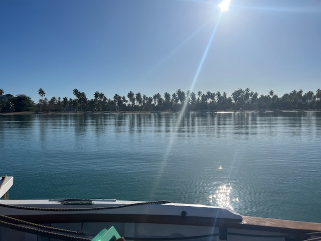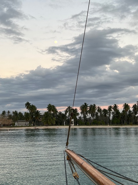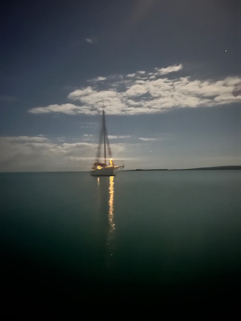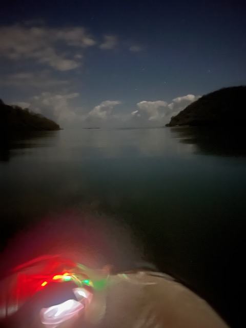 Weiter geht’s gen Westen, ein guter Ostwind lässt uns Meilen fressen. Bei der Siedlung Paguera tasten wir uns durch die Riffe und ankern zwischen malerischen Mangroven bewachsenen Inseln. Etwas erstaunt sind wir ob der Unzahl an Motorbooten, die in großen Bündeln hinter jedem noch so kleinen Sandhaufen ankern. Überall stehen die Menschen im Wasser, trinken und lassen sich Musik um die Ohren schallen. Hinter der Karibik Idylle verbirgt sich eine Partystadt. Nach kurzem Besuch fliehen wir und Fahren mit dem Dinghi 1 Stunde bis in eine romantische Lagune die voller leuchtenden Algen sein soll. Soll, war aber nicht. Der Mond war schön.