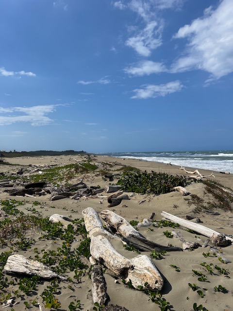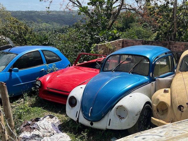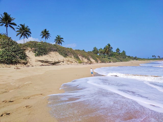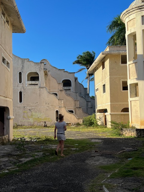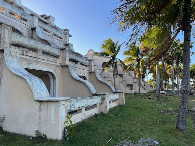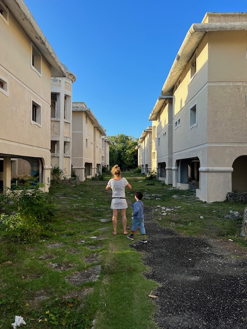 Diese Karre gibt uns genau die Freiheit, die wir brauchen. Jeden Tag brausen wir, vom Buffet gut proviantiert, nach dem Frühstück los und erkunden diese tolle Insel. Endlose, menschenleere Strände laden ein zum buddeln, Strandgut finden und wandern. Aufgegebene Hotelanlagen und Investitionsruinen warten auf Erkundung. In einer logieren nicht nur die lokalen Dealer, sondern probt auch eine Karnevalkapelle, ca. 30 Musiker prügeln wie wild auf ihre Trommeln ein. Ein infernalischer Lärm aber irgendwie auch cool.