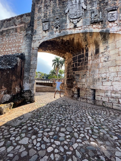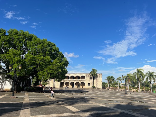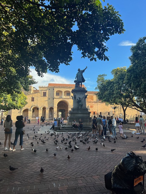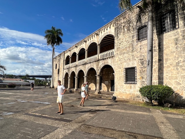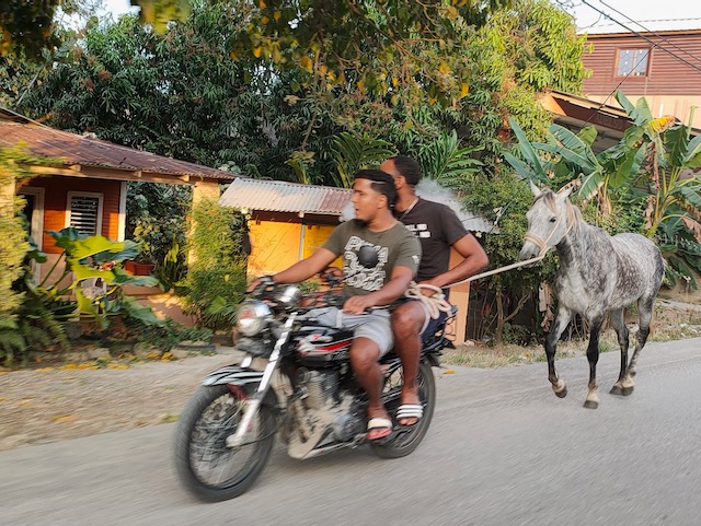 Also, Kloss hinuntergeschluckt und auf ins nächste Abenteuer. Ohne Plan quer über Hispaniola an die Nordküste, Puerto Plata, in 8 Stunden landet der Flieger aus Frankfurt. Erstmal einen Hügel erklimmen, mehrere Zäune des Sicherheitsbereiches überwinden und schon ist dort eine große Straße. Doch wo ist der Bus? Das Internet ist keine Hilfe, die Menschen rundum eher verdutzt, ob des plötzlich erschienenen Gringos. Gegenüber ist eine Polizeiwache, bewacht von martialisch herausgeputzten, böse ihre Schießprügel schaukelnden Uniformträgern. Die kann ich fragen. Frohgemut zögerlich wende ich mich in ungefähr Spanisch an den äußersten Bewacher. Grimmig bedeutet er mir zur Seite zu treten, ein Pick Up hält scharf hinter ihm und 4 schwer bewaffnete Zivilfander zerren einen Gefesselten Mann von der Ladefläche und schaffen ihn ins Gebäude. Jetzt lotst mein Ansprechpartner mich zur Fahrbahn, winkt mit seiner Flinte ein Motorrad ran und erteilt dem Fahrer Anweisungen. Immerhin verstehe ich Bus und Santo Domingo, also steige ich auf und werde in halsbrecherischem Tempo quer durch die Stadt chauffiert. 20 Minuten zu einer Bushaltestelle im Hinterhof, 2 Euro. Das hätte ich nie gefunden, freue mich heil angekommen zu sein und im wartenden Bus einen Fensterplatz zu ergattern. 2 Stunden dauert die Fahrt entlang der Südküste, blauer Ozean bis zum Horizont, dort wird Aurora morgen segeln. Die schweifenden Gedanken werden durch eine abrupte Bremsung des Busses eingefangen. Duzende Motorräder sperren die Autobahn. Mein Sitznachbar bemerkt meinen fragenden Gesichtsausdruck und erklärt mir, dass das nur ein illegales Straßenrennen sei, völlig bekloppt, aber nur für die Fahrer gefährlich. Er heißt Brian, ist Architekt in La Romana und auf dem Weg zu seiner Freundin in der Hauptstadt. Die Restliche Fahrzeit erfahre ich sehr viel über Land, Leute, Politik und Kultur, Entwicklungshoffnungen und Hürden, Perspektiven und Sorgen. Wirklich sehr spannend und eine gute Grundlage für die nächste Zeit. Der Anschluss Bus in Santo Domingo ist leider gerade losgefahren und so werde ich wieder von einem hilfreichen Menschen auf ein Motorrad verfrachtet und durch die Stadt transportiert. Wild, sowohl dieser chaotische Molloch als auch der Fahrstiel. Für Motorräder zählen keine Regeln, rote Ampeln sind noch nicht einmal Verhaltenshinweise.