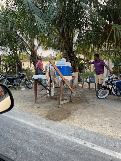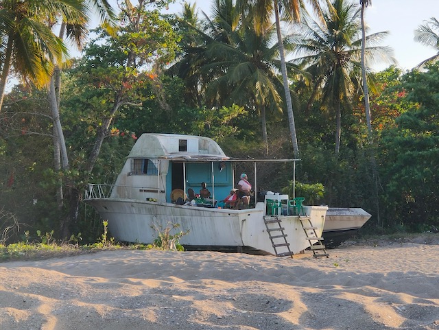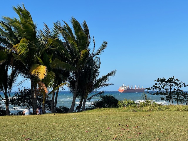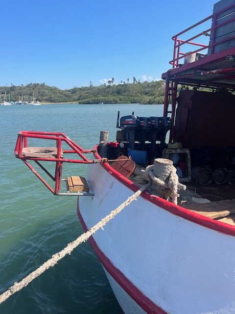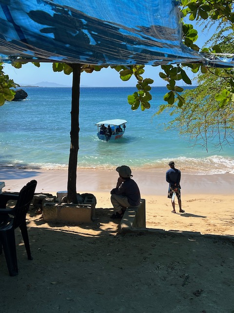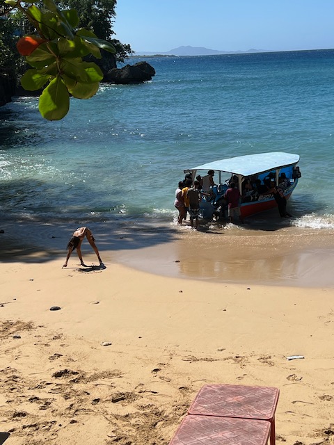 Der gemeinsame Einkaufstrip in Samana, nach Oles Wiedereinstieg, kann als halb erfolgreich gewertet werden. Die Vorhut, Chiara, Jesper und Elli bleiben nach dem Versuch eine bezahlbare Autovermietung zu finden, in einer wunderschönen Strandbar hängen. Hierher werden Ole, der den leckenden Aufbau abgedichtet hat, und Mailies und Jonas, die das WLAN für Uniaufgaben nutzen wollten, von zwei wilden Motorradtaxis gebracht. Tom bleibt an Bord und beaufsichtigt/bezahlt zwei hilfreiche Geister die unser Unterwasserschiff reinigen. Aus der Strandbar geleitet ein freundlicher Herr, der weiß was wir brauchen, uns in ein Andenkengeschäft samt Zigarrenabteilung. Zur Probezigarre gibt es undefinierbaren Fruchtalkohol. Ohne Gemüse aber mit super Laune und richtig guten Stumpen nehmen wir 2 TucTucs zum Hafen.