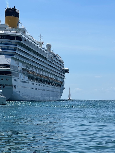 La Romana, die Aurora geht Anker auf und verlässt den Fluss, wirkt neben dem Costa- Kreuzfahrtschiff winzig klein, entschwindet hinter der Landzunge. Ich, Ole, jetzt offiziell kein Kapitän mehr, stehe an Land und werde von einer hinterhältigen Schwermut übermannt. Obwohl ich mich freue, mit Gyde und Bosse zwei Wochen an Land zu verbringen, glänzen die Augen verdächtig. Dem Offizier der Anti- Drogen Einheit stehen die Gedanken ins Gesicht geschrieben: „Was für ein Lappen“.