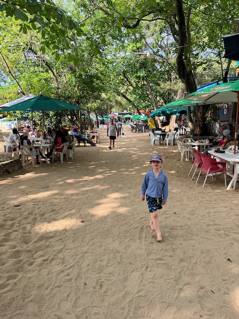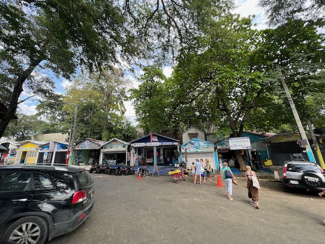 Des morgens befindet sich tatsächlich der örtliche Tui- Vertreter im großen Bespaßungsamphittheater und wartet auf abenteuerlustige Pauschaltouristen. Seine Mappe quillt über von Möglichkeiten, große und kleine Attraktionen, alle für viele Teilnehmer und viele Dollar. Interessenten sind keine da und, nein, Kinderbetreuung wurde wegen Corona eingestellt. Das im Flyer beworbene, super ausgestattete und von einer attraktiven Mitarbeiterin betreute Spielzimmer geschlossen. Der Kleine könne ja an den generellen Animationen von 15:00 bis 17:00 teilnehmen. Am Besten würde er vorher schnell schwimmen lernen und anfangen zu trinken. 6, setzen. Leicht angefressen fragen wir nach einer günstigen Möglichkeit ein Auto zu mieten und bekommen seine geballte Kompetenz zu spüren. Da außer uns offensichtlich kein Gast, von ihm beraten, dem Resort entkommen will, führt er uns durch verwinkelte Gassen in eine Geldwechselstube. Hier kennt er den Chef, finsterer  Gangstertyp, der auch ein Auto vermietet, und zwar zu einem günstigem Satz an uns. Großer, Respekt einflößender, leicht schreddeliger SUV mit schwarzen Scheiben. Damit brauchen wir nirgends Angst zu haben, weder in der Wildnis noch im Getto, super.