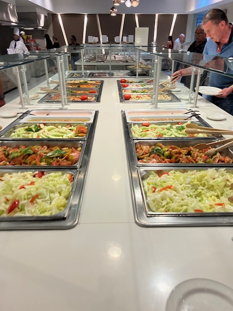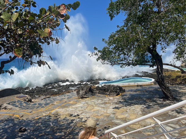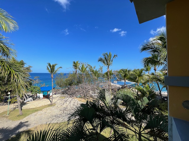 Morgens hören wir die dröhnende Klimaanlage vor dem Fenster und sehen die Wand des nächsten Hauses in wenigen Metern Entfernung. So geht es nicht, wir wollen ein anderes Zimmer. Einen kleinen Aufschlag später beziehen wir ein sehr schönes Zimmer mit Meerblick, besser. Gut ist auch das Buffetrestaurant am Meer, 3-mal pro Tag gibt es viel und für die Menge sehr gut zu essen und zu trinken. Deswegen sind die Gäste, hauptsächlich schwergewichtige Amerikaner und Kanadier, hier. Ab morgens werden sich die Cocktails in 1 Liter Kaffeebechern reingelötet, nach dem Essen am Pool. Die Erfahrung wollen wir teilen, wie die Sonnenliegen und das fröhliche Animationsprogram, in diesem Fall: Ringe werfen.