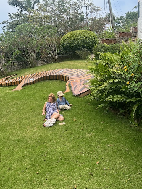 Nachdem wir uns eine halbe Stunde, mit grausam quietschender Stimme, haben bespaßen lassen, fliehen wir aus dem Hotel. Nicht zu ertragen. Die Ortschaft rundum ist quirlig, bunt und kunstlastig, eine erstaunliche Überraschung und Wohltat. Wir beschließen, am nächsten Tag die Kinderbetreuung zu begutachten und ansonsten die Hotelanlage zu meiden.