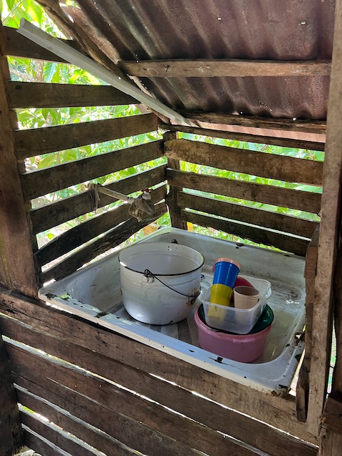 Auf den Wegen zu Flüssen und Wasserfällen im Innenland passieren wir kleine Dörfer mit unzähligen Läden und Bars an den meist unbefestigten Straßen in den küstennahen Bergen. In jeder Ansiedlung mindestens eine Kirche und mehrere Wettbüros. Diese kleinen Kabuffs werden jeweils von einer jungen Frau betrieben und neben dem Erwerb von Wettscheinen kann man dort sein Telefonguthaben aufladen. Wie wir später erfahren, kann Mann wohl viele der jungen Frauen auch für Anderes bezahlen. Unsere Idee, es sind studentische Nebenjobs mit viel Ruhe zu lernen, fanden wir besser. Aber es ist wohl weitestgehend noch eine schnöde Machowelt, die Frauen arbeiten und die Männer sind wichtig, betreiben Hahnenkampfarenen, saufen und fuchteln mit Waffen rum. Dazu später mehr.