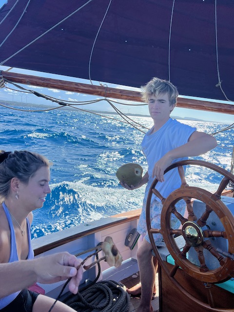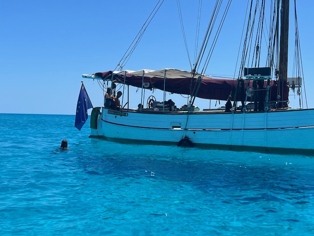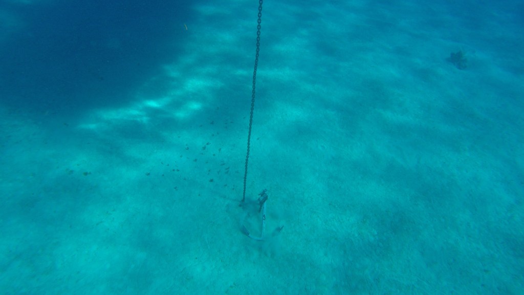 Aber Pustekuchen, es gibt nur eine brüllheiße staubige Straße, die Tom und Ole, die Beamtensucher, längs maschieren bis ein Polizeijeep neben ihnen hält und nach ihrem Begehr fragt. Zum Glück, das Amt ist in die andere Richtung, der zuständige Officer ist aber irgendwo. Die nette Polizistin spielt Taxi, Fremdenführerin und Suchdienst in einem. Irgendwann fragt sie eine Frau vor der Wäscherei, die telefoniert zufällig gerade mit dem Imigration-Officer, der kommt daraufhin an den Hafen. Gebühren, 2 mal 60 Dollar Sonntagszuschlag ist in Bar zu entrichten, die 300 Dollar Befahrensabgabe und Angelschein können wir überweisen. Zu dem Onlineformular, dessen 5 Seiten wir bereits auf See komplettiert haben, müssen wir mehrseitige Einreisebögen ausfüllen. Aber alle Beteiligten waren sehr freundlich. Ansonsten, Geldautomat (in 1,5 Kilometer Entfernung) kaputt, der Laden und die Bar (wirklich am Strand) geschlossen. Gefühlt 100 Grad Hitze. Schnell zurück aufs Schiff, ins Wasser, wieder raus und Anker auf. Noch 9 Meilen bis in die Man ´o War Bay, hier soll es schöner sein. Haben wir nicht gefunden.