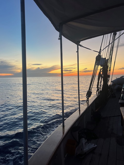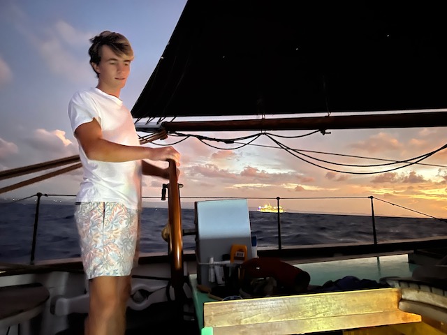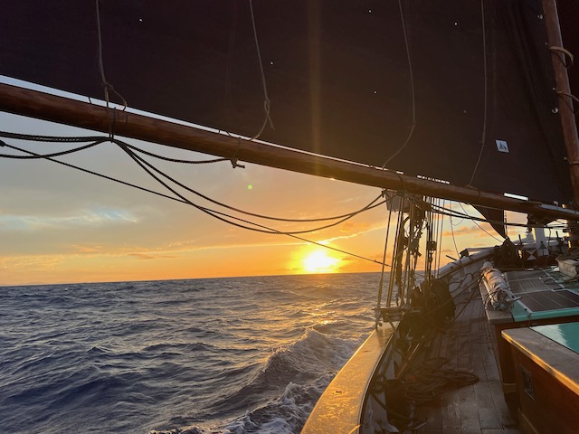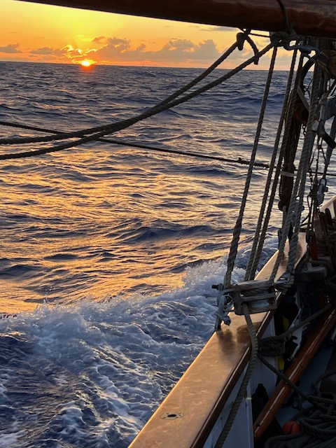 Nach einem letzten abendlichen Rumpunch an Land lichten wir den Anker und setzen Segel für Bermuda.