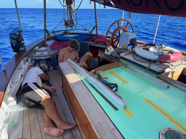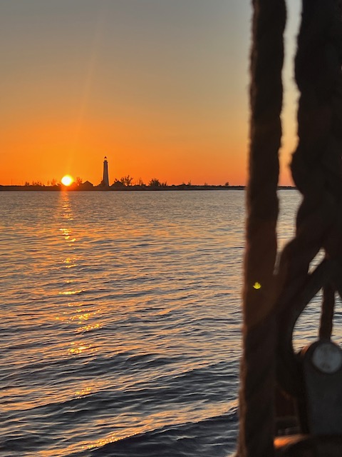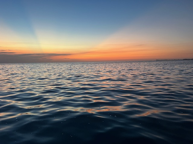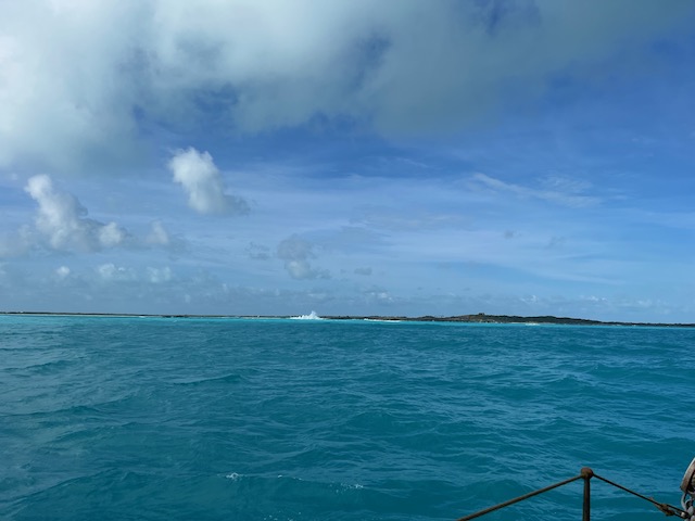 Paula und Proviant an Bord geht es los. Knapp 200 Seemeilen bis zu der ersten Insel der Bahamas. Nachmittags und Abends weht ein schöner Wind der uns flugs in die richtige Richtung treibt, die ersten 50 Meilen bevor er sich dem Diktat des Wetterberichtes ergibt und einschläft. Weit und breit sind weder tolle Hochs noch tolle Tiefs in Sicht, die Isobaren liegen endlos weit auseinander. Woher soll der Wind kommen, die nächsten Tage? Von nirgendwo. Also Motoren wir ab 2:00 Uhr für 29 Stunden bis Great Inaqua. Hier können wir einklarieren und hoffen auf ein entspanntes Dorf mit Beachbar und Strand.
