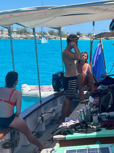 Die schwimmenden Schweine, für die die Bahamas berühmt sind, gibt es leider erst 50 Meilen weiter nördlich. Das ist uns zu weit, außerdem sollen mit jedem Schwein 10 Touristen schwimmen die auch noch gebissen werden und dafür Eintritt zahlen müssen.